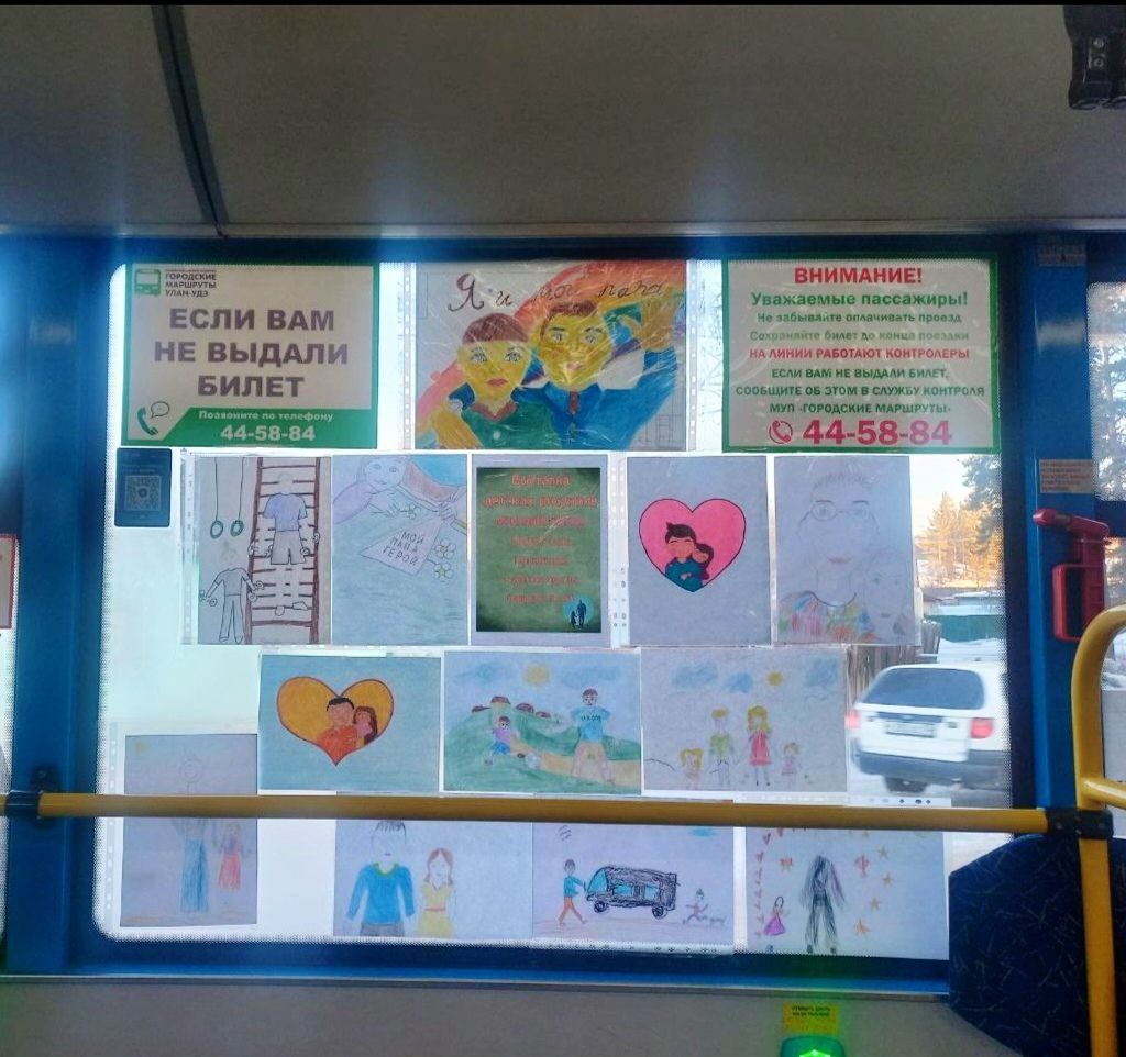 Дети создали в улан-удэнском автобусе выставку рисунков «Я и мой папа