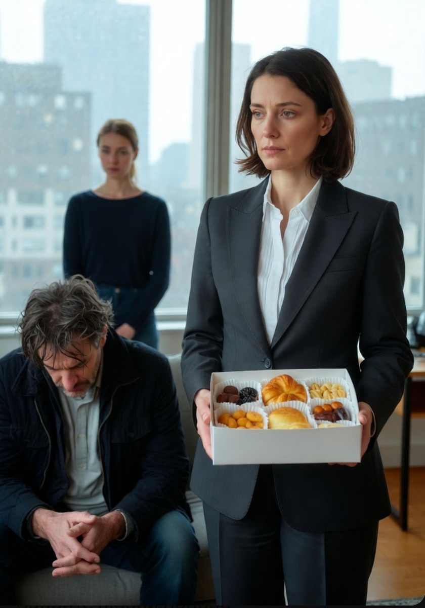 Когда она вошла в кабинет, Виктор сидел на диване для посетителей, обхватив голову руками. На столе стояла нетронутая коробка с салатом и макарон. Рядом лежал её листок, развёрнутый.