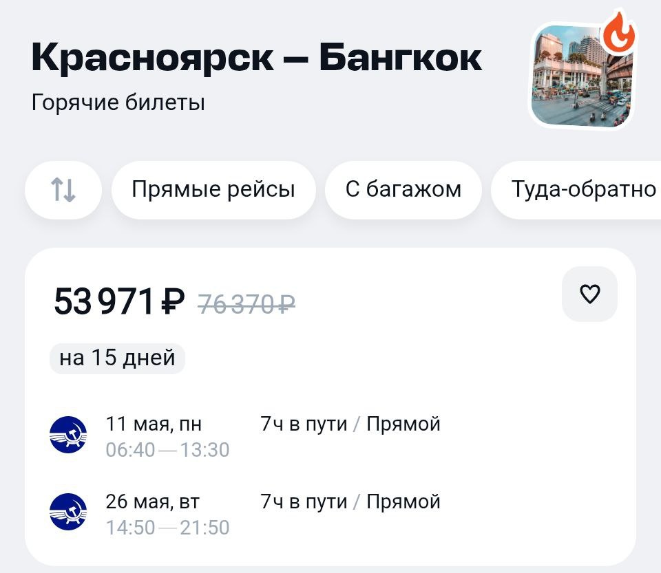 Немного дешевле, чем сейчас 😒 https://aviasales.tpm.lv/YVX4Nsrw #BKK @KJA / KJA MAX