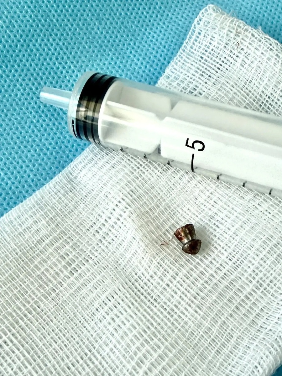 Для точного определения расположения снаряда пациенту была выполнена компьютерная томография с последующим расчётом нахождения инородного предмета на цифровой модели. Исследования показали, что пуля «добралась» до зачелюстной ямки и остановилась в месте выхода ветвей лицевого нерва, не задев их только чудом. В расположении снаряда заключалась основная сложность вмешательства. Чтобы сохранить нервы, врачам пришлось проделать тончайшую работу. Операцию провели главный внештатный ч