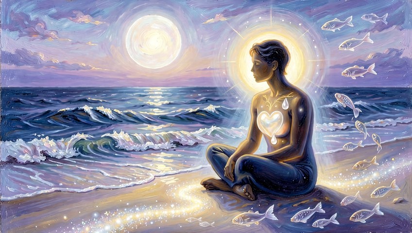Солнце сейчас в Рыбах 🌊✨ Его свет мягкий, как шепот океана — он зовёт не к яркой демонстрации, а к глубокой искренности