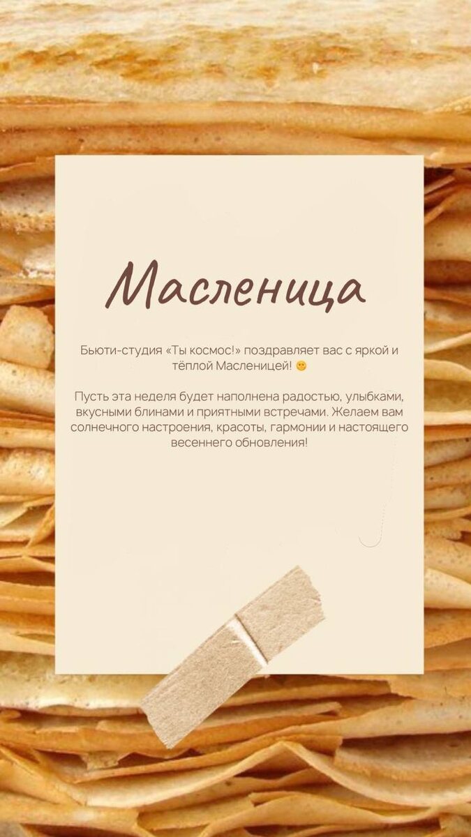 Бьюти-студия «Ты космос!» поздравляет вас с яркой и тёплой Масленицей