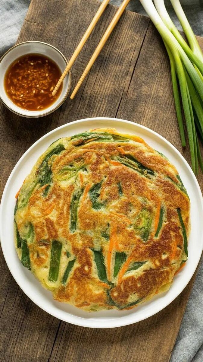 🎬🍳 🥞 блинчики Паджон: Едим, пока главные герои выясняют отношения Ингредиенты: · Мука — 120 г (она здесь вместо главного героя — основа всего). • Крахмал - 2 ст. ложки (он секретный ингредиент для хруста) · Вода — 180 мл (слезы радости от того, что вы решили готовить). · Яйцо — 1 шт. (без него, как без второго плана, никак). · Соевый соус — 1 ст. л. (для цвета). · Сахар — ½ ч. л. (чтобы жизнь не казалась соленой). · Соль — 1/3 ч. л. (щепотка драмы). · Зелёный лук — 4–5 перьев (наши стрелы любви) · Морковь — 1 небольшая (яркий персонаж, который всегда в центре внимания). · Болгарский перец — ½ шт. (хрустящий краш этого рецепта). · Цукини — ½ шт. (скромный, но важный член овощного состава). · Масло растительное — для жарки (чтобы ничего не пригорало, как финал вашей любимой дорамы). Пошаговая режиссура: Шаг 1. Кастинг в миске В глубокой миске устраиваем прослушивание. Смешиваем муку, крахмал, воду, яйцо, соевый соус, сахар и соль. Перемешиваем венчиком до тех пор, пока тесто не ст