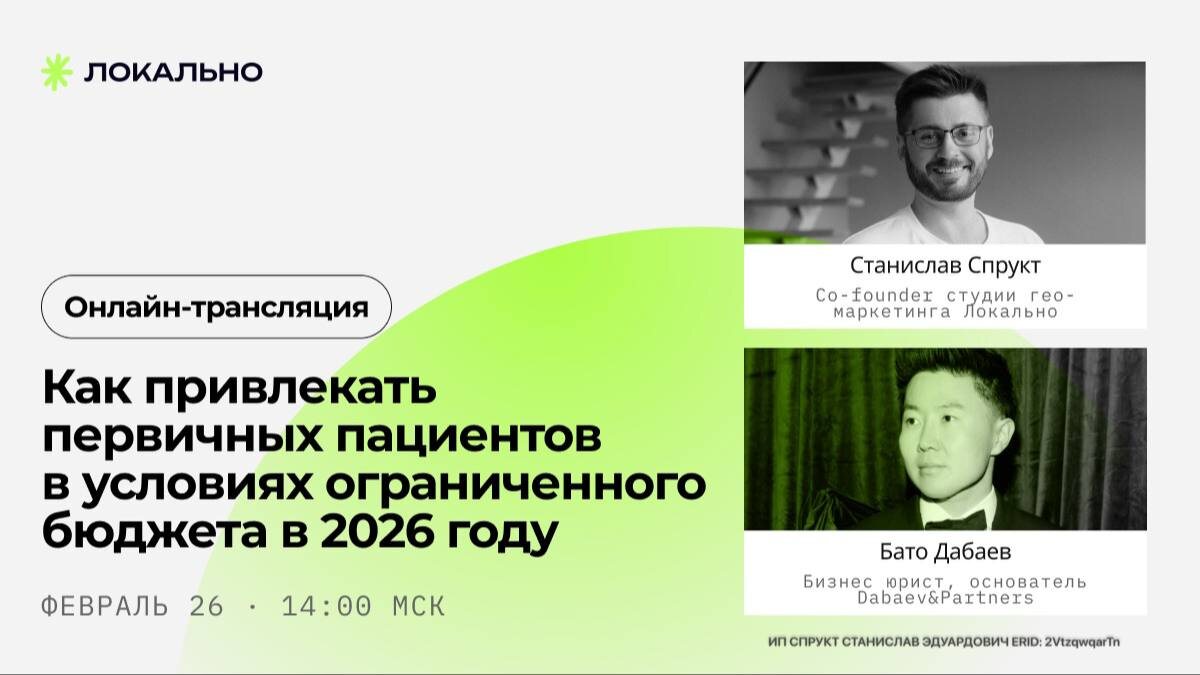В 2026 году частная медицина столкнулась с новой реальностью: — пациенты откладывают платные визиты; — доверие к рекламе падает; — федеральные сети «выжигают» регионы бюджетами; Дорогие каналы больше не дают окупаемости. Вопрос уже не где рекламироваться, а как привлекать первичных пациентов без слива бюджета. 📅 26 февраля в 14:00 — онлайн-трансляция для владельцев и маркетологов клиник: ▪️ выход из кризиса платного трафика; ▪️ переход на гео-маркетинг, локальное SEO и ИИ-выдачу; ▪️ юридические риски, о которых забывают 80% клиник. 👉 Подробности — на сайте о конференции 👉 Регистрация — через Telegram-бот
