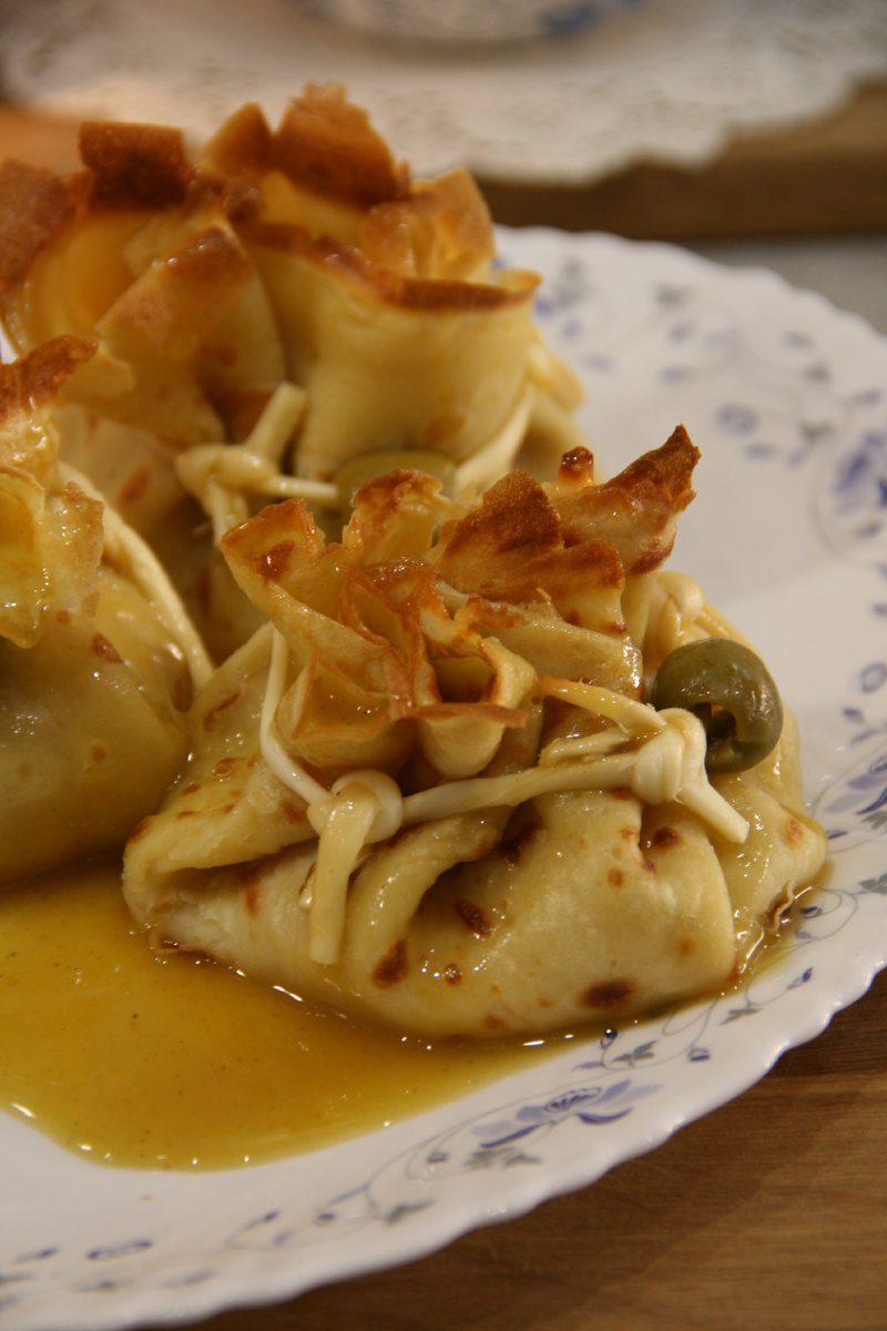 В мире, который так часто спешит, есть что-то магическое в ритуале приготовления блинов. Это не просто готовка, это момент тишины и гармонии, когда ингредиенты превращаются в тепло, а продукты — в заботу. Сегодня мы создадим не просто блюдо, а маленькие мешочки с сюрпризом, перевязанные сырной нитью, как письма, адресованные самым близким. Часть первая. Тесто «Три стакана» — Основа бытия В глубокой миске, как в колодце с чистыми помыслами, соединяем начала всего сущего.