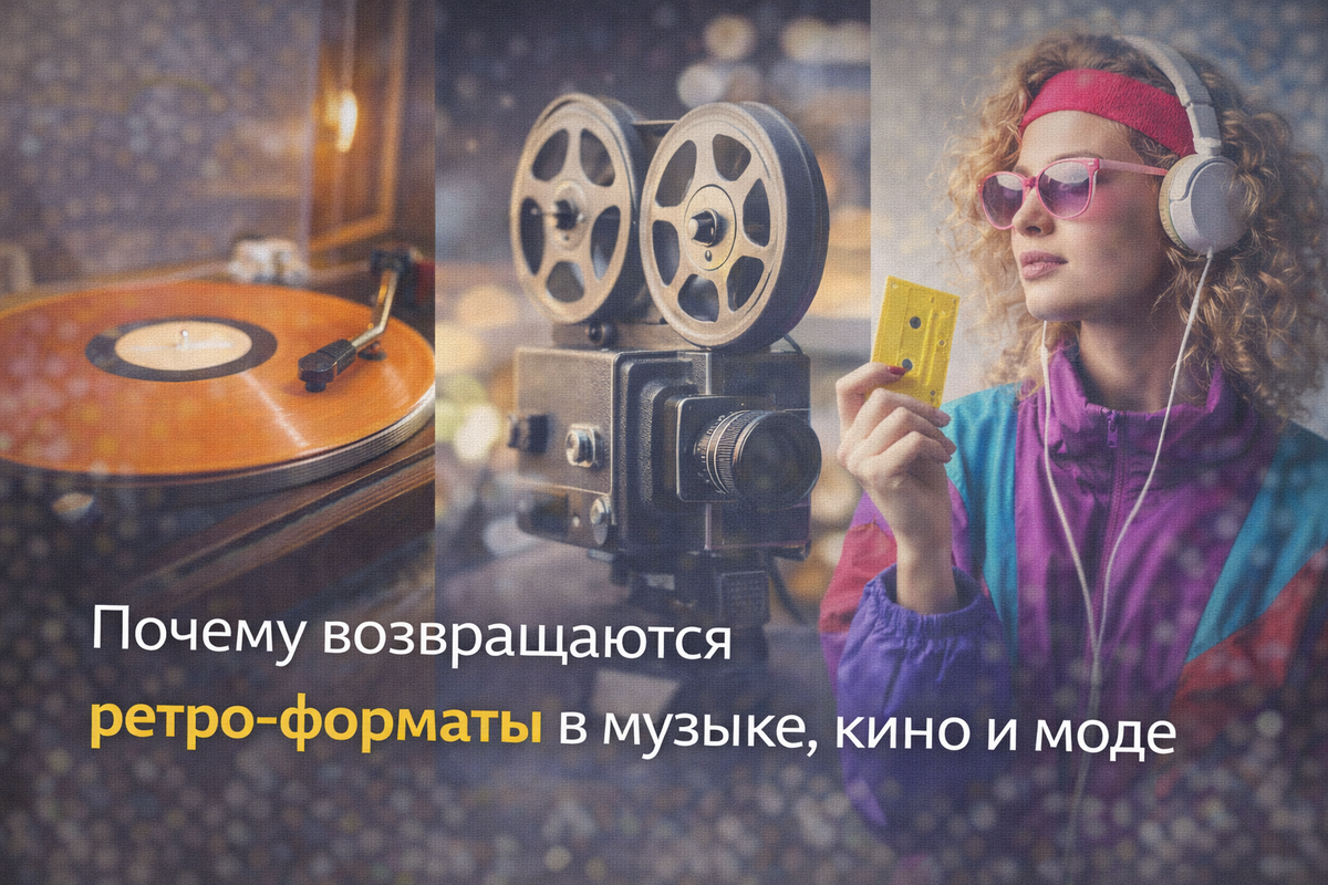 Каждые пару лет кто-то говорит: “О, это снова 90-е”. Или 80-е. Или начало 2000-х. В моде снова широкие джинсы, в кино — ремейки культовых фильмов, в музыке — винил и аналоговый звук. Кажется, что индустрии просто закончились идеи. Но на самом деле всё сложнее. Возвращение ретро — это не про отсутствие нового, а про реакцию на перегруженную современность. Ретро возвращается не из ностальгии ради ностальгии. Люди ищут эмоциональную опору, предсказуемость и “осязаемость” в мире, где всё стало цифровым и слишком быстрым. Индустрии подхватывают этот запрос и превращают его в тренд. За последние десять лет всё стало мгновенным. Музыка — в стриминге, кино — в онлайне, одежда — в быстрой моде. Контент бесконечный, выбор огромный, новинки сменяют друг друга каждую неделю. Парадокс: чем больше вариантов, тем меньше ощущения ценности. Виниловая пластинка, плёночная камера или старый формат кино — это замедление. Это процесс, а не просто результат. Ретро возвращает чувство “я выбираю и проживаю”,