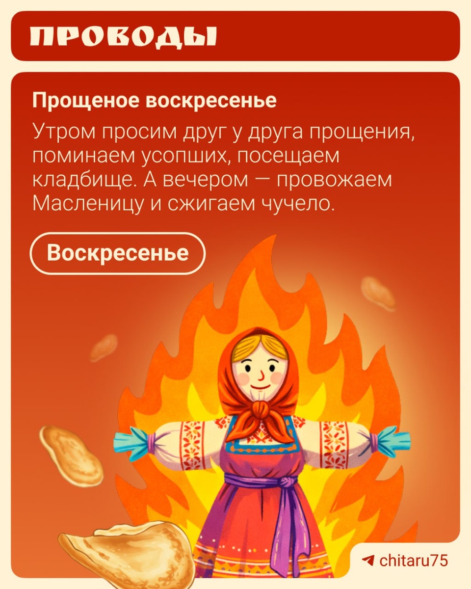 В последний день Масленицы не забудьте попросить прощения у близких и помянуть усопших, а вечером — проводить зиму