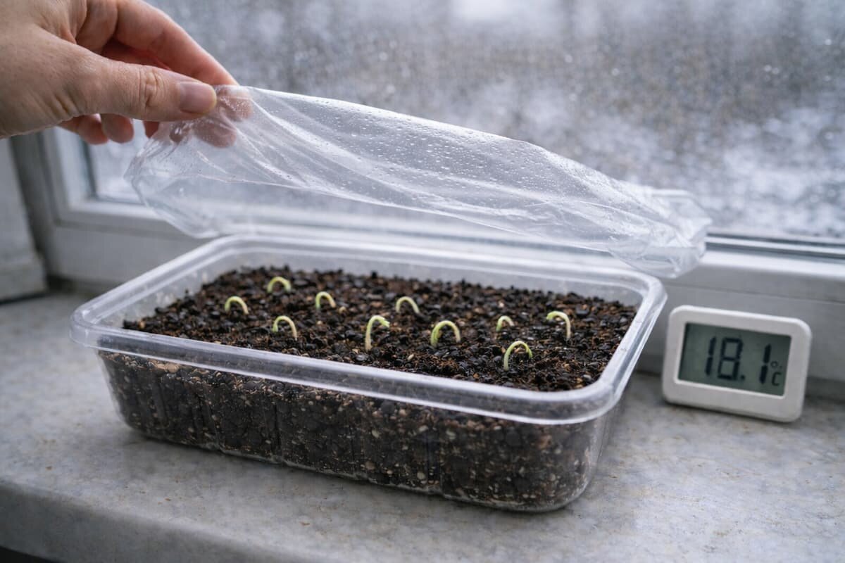 Каждый раз, когда появляются первые петельки, у меня внутри что-то щёлкает. Вот они. Взошли. Раньше в этот момент я просто радовалась. Поливала. Улыбалась. Ставила поближе к свету — и всё. А потом начинались проблемы. Теперь я знаю: самое важное происходит не до всходов, а в первые часы после них. И я всегда проверяю одно и то же. Как только рассада показалась из земли, она начинает искать свет. Если его мало, растение вытянется буквально за день. Я больше не жду вечера. Не жду “завтра поставлю лампу”. Свет должен быть включен сразу. И не где-то в стороне, а прямо над всходами. Иногда достаточно одного пасмурного дня, чтобы стебель стал тонким и слабым. А потом уже ничего не исправишь полностью. Раньше я думала: подниму позже, окрепнет. Нет. Ослабленный старт остаётся с растением надолго. Это второе, что я проверяю. Не в комнате. А именно у стекла. Февраль обманчив. В комнате может быть +22, а на подоконнике — +15. Корни чувствуют это сразу. Если холодно, рост замедляется. Листья стано