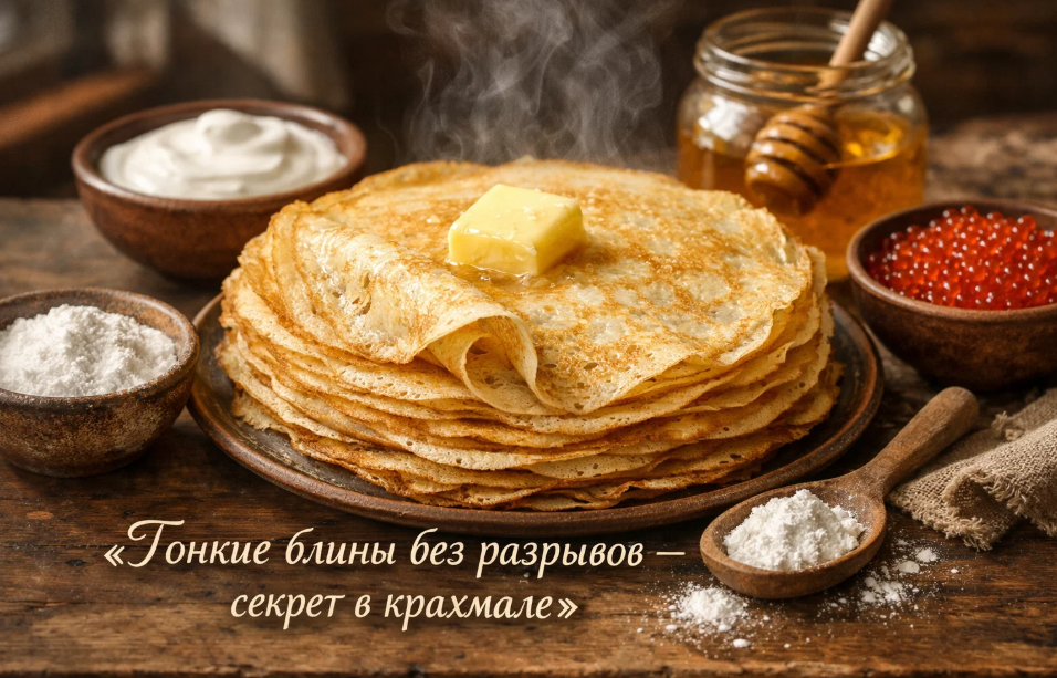 Почему же крахмал так меняет структуру теста и делает блины невероятно тонкими и прочными одновременно? Давайте разберемся в этом вопросе подробнее, а заодно я поделюсь с вами проверенным рецептом, который выручает меня каждую Масленицу.