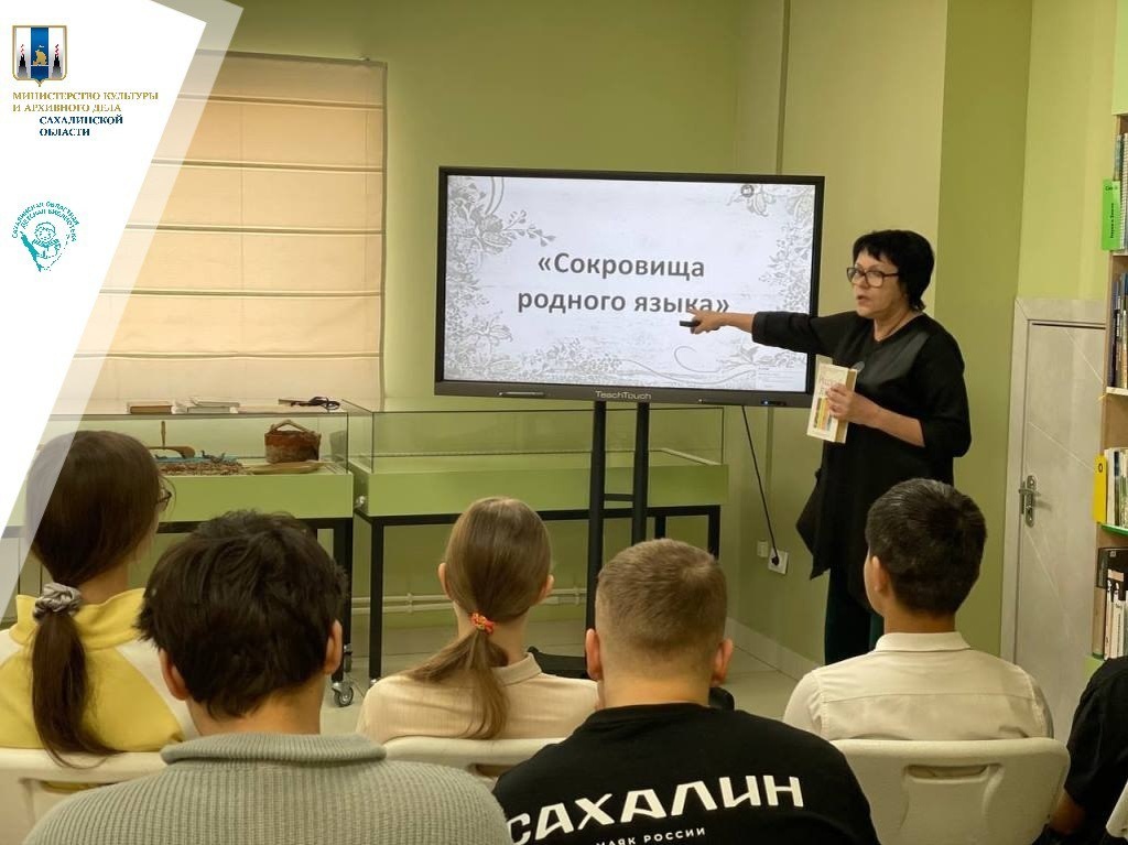 📚 В преддверии Международного дня родного языка в Сахалинской областной детской библиотеке для учащихся средней образовательной школы №22 прошёл тематический час «Сокровища родного языка». Цель мероприятия состояла в том, чтобы осмыслить роль родного языка в жизни человека, понять, что язык – не только средство общения, но и живая связь времён, духовная опора и культурный код народа. Подробнее - в нашем канале в MAX: https://clck.ru/3RwwRT