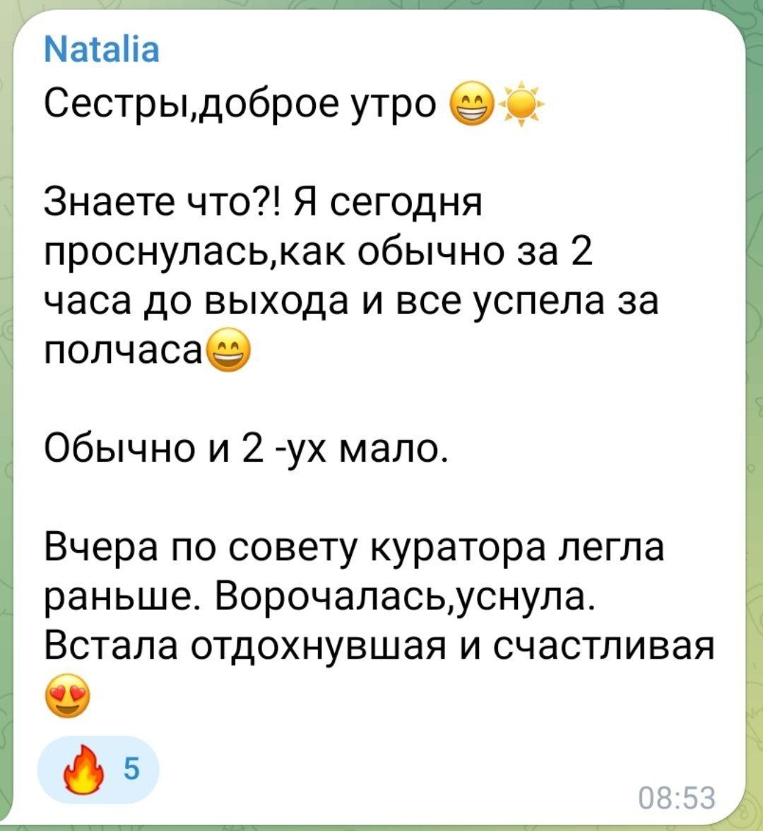 » ⏳ Туда, где к незнакомым неделю назад девчонкам обращаются "сестры". Где 460+ участниц из разных стран и городов. Где тепло и полезно. Наталья не даст соврать. Годами она вставала за 2 часа до выхода — и всё равно не успевала. На второй день куратор предложил небольшие изменения в план дня. Вуаля — «всё успела за полчаса. Встала отдохнувшая и счастливая». Ларчик открывался просто, но неочевидно изнутри. Сегодня в 15:00 по мск — первый эфир с о. Александром в основном канале. Уже вышли 3 задания и одно размышление. В факультативе «Питание и спорт» уже — рекомендации по питанию, рецепты ПП-блинов и тренировка на 3 минуты на всё тело от Александра Кузьмина. Нам кажется, половина девчонок уже немного в него влюблена. 😊 А в стилиста-визажиста Ольгу Матвееву — почти каждая! Эфир в субботу собрал 200 участниц. Курс продлится ещё 15 недель — до 7 июня. Доступ к материалам — до сентября. По местам на тарифам с обратной связью. Тариф «Усиленный» — мест нет. Тариф «С куратором» — 4 места