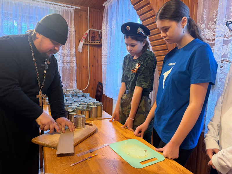 В воскресной школе при храме в честь мучеников Флора и Лавра в селе Сайгатиной на столах – груда жестяных банок, рулоны картона и большие чайники с расплавленным парафином. Здесь льют свечи для тех, кто сейчас в окопах. Дети, пожарные и священник – все объединились вокруг одного дела. Потому что там, за ленточкой, родные и свои. – Чтобы высоту не мерять линеечкой, мы можем вот так поставить и отметить, – священник Даниил Долгушин показывает школьникам, как правильно вставлять картонную гармошку в жестяную банку. Сначала детям нужно сделать заготовки. Потом уже непосредственно заливать сами свечи. На плите в большой кастрюле готовится начинка – она из особенных ингредиентов: здесь парафин и огарки церковных свечей. КСТАТИ:В мастер-классе приняли участие волонтеры Сайгатинской средней школы, воспитанники военно-патриотического клуба «Я патриот» и первичного отделения «Движение первых». Теперь школьники планируют поделиться приобретенными навыками с одноклассниками, родителями и учителями