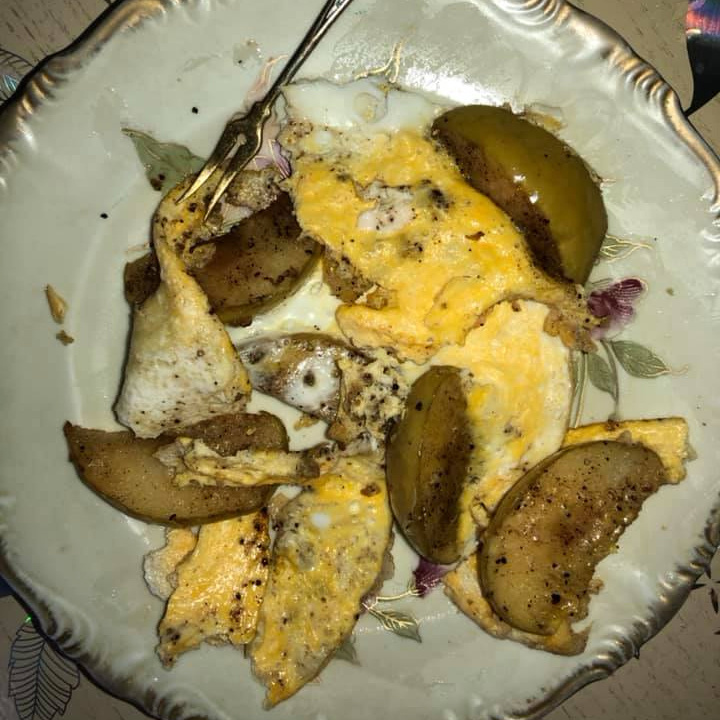 ✔ Яблоко (среднее, кисло-сладкое) —1 шт.; ✔ Яйца — 2 шт.; ✔ Масло растительное (для жарки) —1 ч. л.; ✔ Чеснок — 1 маленький зубчик (или меньше); ✔ Соль, перец черный молотый — по вкусу. Необычное, но очень гармоничное сочетание — кисло-сладкое яблоко и нежные яйца. Блюдо готовится быстро и идеально подходит для завтрака. Дольки яблока обжарить на небольшом количестве масла с двух сторон до легкой румяности. Посолить, поперчить, добавить выдавленный зубчик чеснока. Сверху залить двумя предварительно взбитыми вилкой яйцами. Убавить огонь до маленького и готовить под крышкой, пока яйца не схватятся (можно оставить желтки жидкими или прожарить до полной готовности — по желанию). КБЖУ на 100 г – 117/5,9/7,3/6,6 (из них клетчатки ~15%). Рецепт на странице Перепады настроения знакомы каждому, но где заканчивается норма и начинается болезнь? Советует доктор Ксения Хромова, психиатр, психотерапевт Автор рецепта – Любовь Страхова Расчёт КБЖУ сделан с помощью Telegram-чат-бота https://t.me/vesip