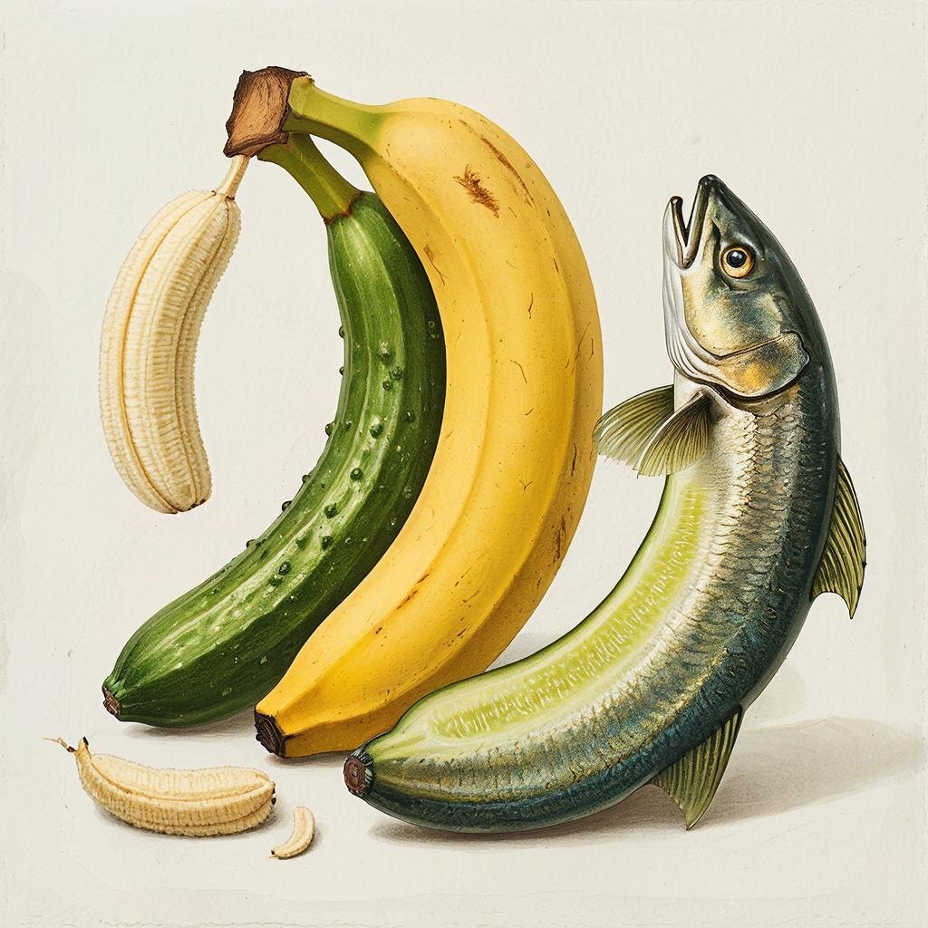 Вообще-то, питерские так не говорят, ведь это не корюшка пахнет огурцом, а огурец — корюшкой, вот и бананы, очевидно, в авторской редакции пахли корюшкой, но потом пришли москвичи и всё испортили, заявив, что остальная страна не поймёт. Бананы, пахнущие рыбой, придумают же.
