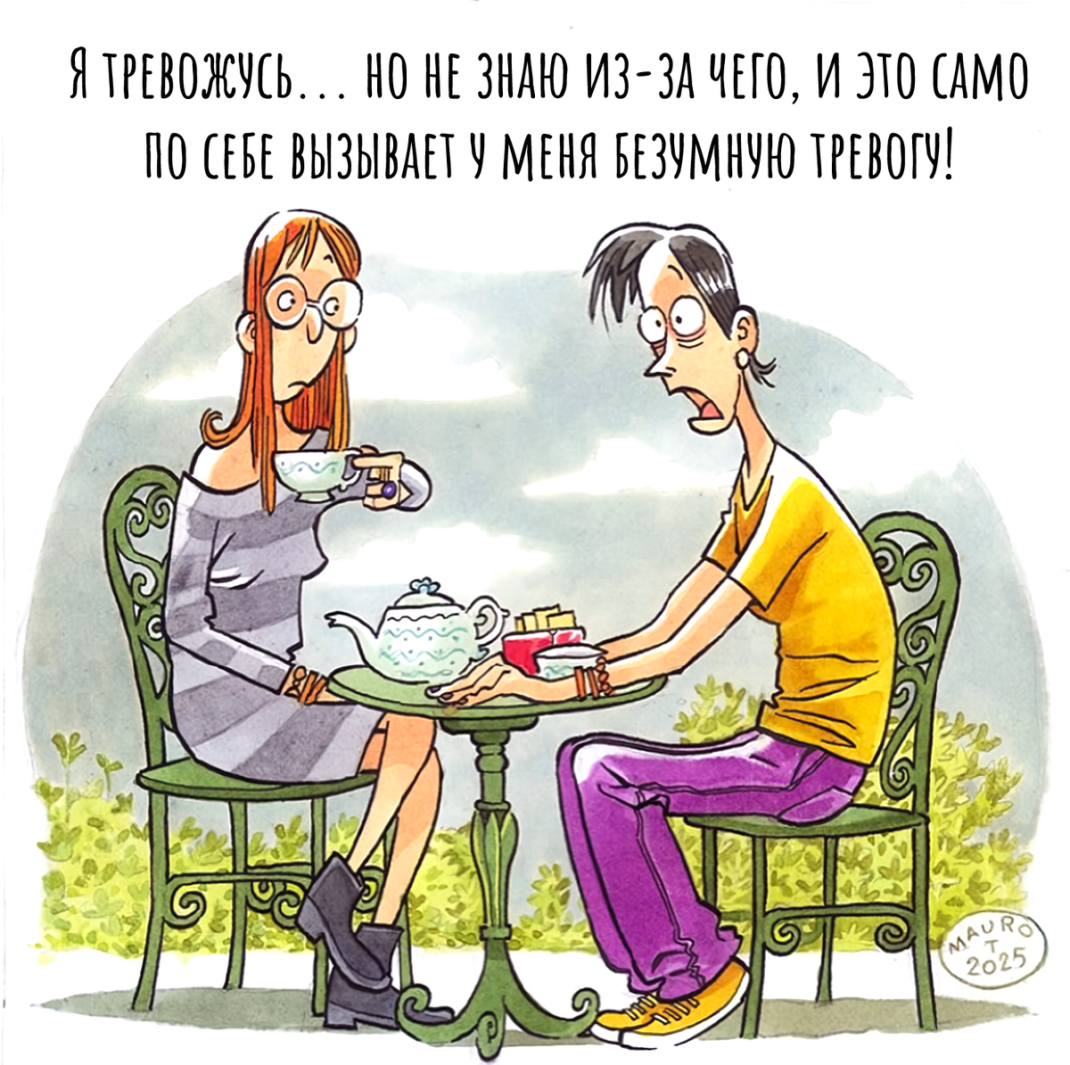 В прошлом октябре итальянский карикатурист и художник-иллюстратор Мауро Таларико делился со своими подписчиками в соцсетях тем, что не может поверить в цифру 72, означающую количество прожитых им лет. Нынешней осенью он станет ещё на год старше, но возраст по паспорту и мироощущение никак не могут прийти к согласию, потому что в душе знаменитый автор так и остаётся молодым и не теряет ни чувства юмора, ни задора, ни профессиональной хватки. Этот весёлый итальянец с огромной гривой седых кудрявых волос, которых хватило бы на несколько приличных шевелюр, абсолютно точно знает: в мире слишком много интересного и уникального, чтобы брюзжать, дряхлеть и бояться неизбежной старости. (О нём я уже писала на канале и очень рекомендую ознакомиться с подборкой его классных карикатур.) Мауро привык получать от жизни удовольствие и, как настоящий итальянец, отличается ярким темпераментом и бурной жестикуляцией. Он обожает красивых женщин, пасту, пиццу, хорошее вино, умный разговор, встречи с друз