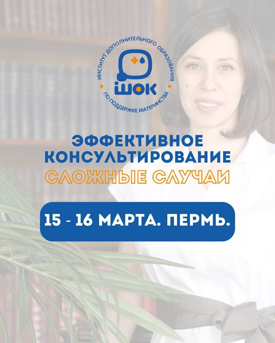 🔹 Пермь 15-16 марта 2026 «ЭФФЕКТИВНОЕ КОНСУЛЬТИРОВАНИЕ. СЛОЖНЫЕ СЛУЧАИ» Практический семинар Маргариты Дик для тех, кто уже работает с клиентами и готов выйти на новый уровень профессиональной рефлексии и мастерства. Что будет эти 2 дня: ▫️ Коммуникация как инструмент - эмпатия, психотерапевтическое слушание, работа с зеркальными нейронами ▫️ Техники активного слушания - перефразирование, отражение чувств, прояснение запроса (практика) ▫️ Профессиональные ловушки: как распознать спасательство, манипуляции и психологическое давление, и уйти от них ▫️ Структура консультации от первичного контакта до заключения договора на рабочий запрос ▫️ Работа с истинным запросом - отличать «хочу помочь» от «что реально нужно клиенту» ▫️ Супервизорский разбор - анализ собственных слепых зон и триггеров в работе со «сложными» случаями 👥 Для кого этот семинар: ✓ Консультанты по ГВ с опытом, ищущие супервизию и инструменты для работы с резистентными клиентами ✓ Специалисты ЛПУ: психологи, врачи, а