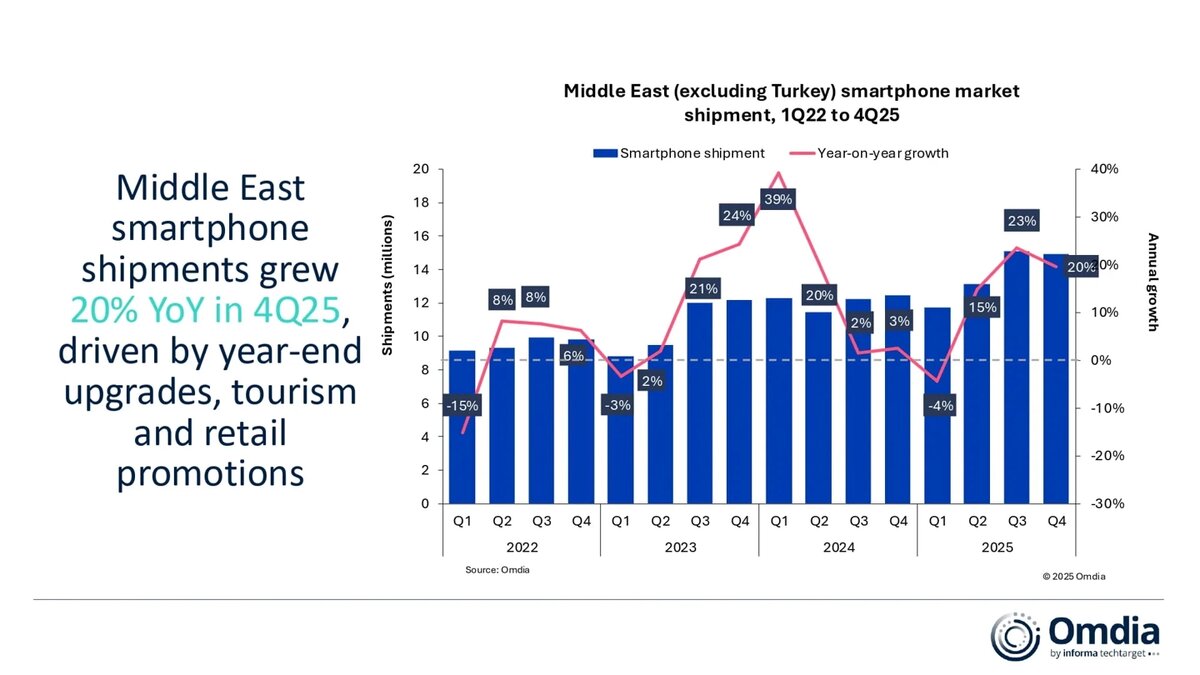 Рост в регионе начал набирать обороты с третьего квартала 2025 года и продолжался до конца года, завершившись очень успешным четвертым кварталом. Поставки в Q4 достигли 14.9 миллионов единиц, что на 20% больше, чем в аналогичном периоде предыдущего года.