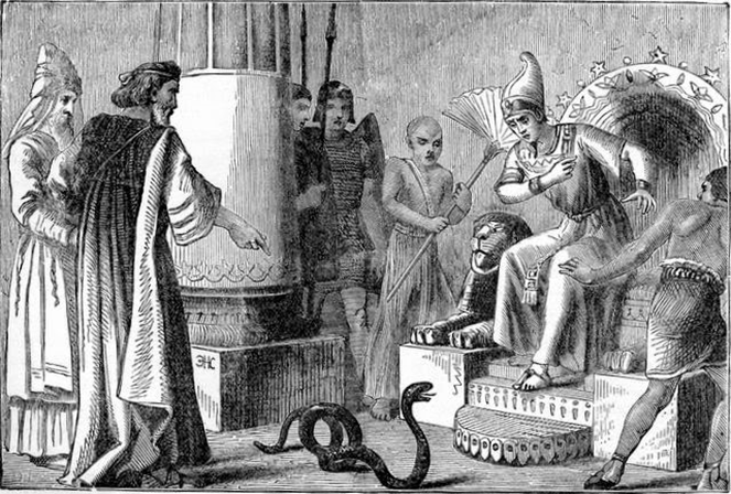 Ещё одно обстоятельство невозможно обойти вниманием. Тот, кто давал Моисею указания из куста, «прямым текстом» заставлял Моисея заниматься чародейством и волхованием, что строжайше запрещается любому, особенно, не имеющему сана. Подтверждением миссионерских полномочий Моисея служил посох, который волшебным образом превращался в змея – исконный, неотъемлемый образ хитрого и лукавого Диавола.