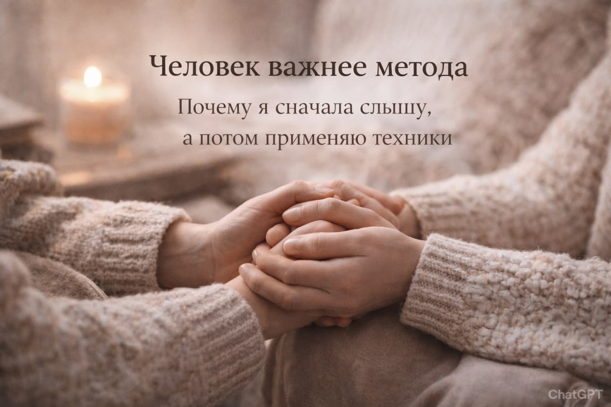 : А вы каким методом работаете? Что именно вы делаете? И каждый раз я понимаю, что за этим вопросом - тревога. Хочется гарантии. Понятной схемы. Названия. Но правда в том, что человек - не схема. Я работаю не методом. Работаю присутствием, вниманием и точностью. И да, у меня есть инструменты, но они вторичны. Первичен - контакт. 📝Недавно ко мне пришла женщина в состоянии выгорания. Она работала "потому что надо". В разводе. Дети. Ипотека. Ответственность. Обязательства. Каждое утро уже через силу и каждый вечер - без ощущения, что живёт. Снаружи - руководитель отдела, собранная, сильная. Внутри - усталость и тихая злость. Мы начали не с техник, а с честного разговора с "масками". Постепенно проявилась её внутренняя часть - очень жёсткая, требовательная. Та, которая держит, заставляет, не даёт расслабиться. Мы не боролись с этой частью, а познакомились, признали её силу. Дали ей другое место внутри. Я использовала и метафорические образы, и работу с подсознанием, и мягкие техн
