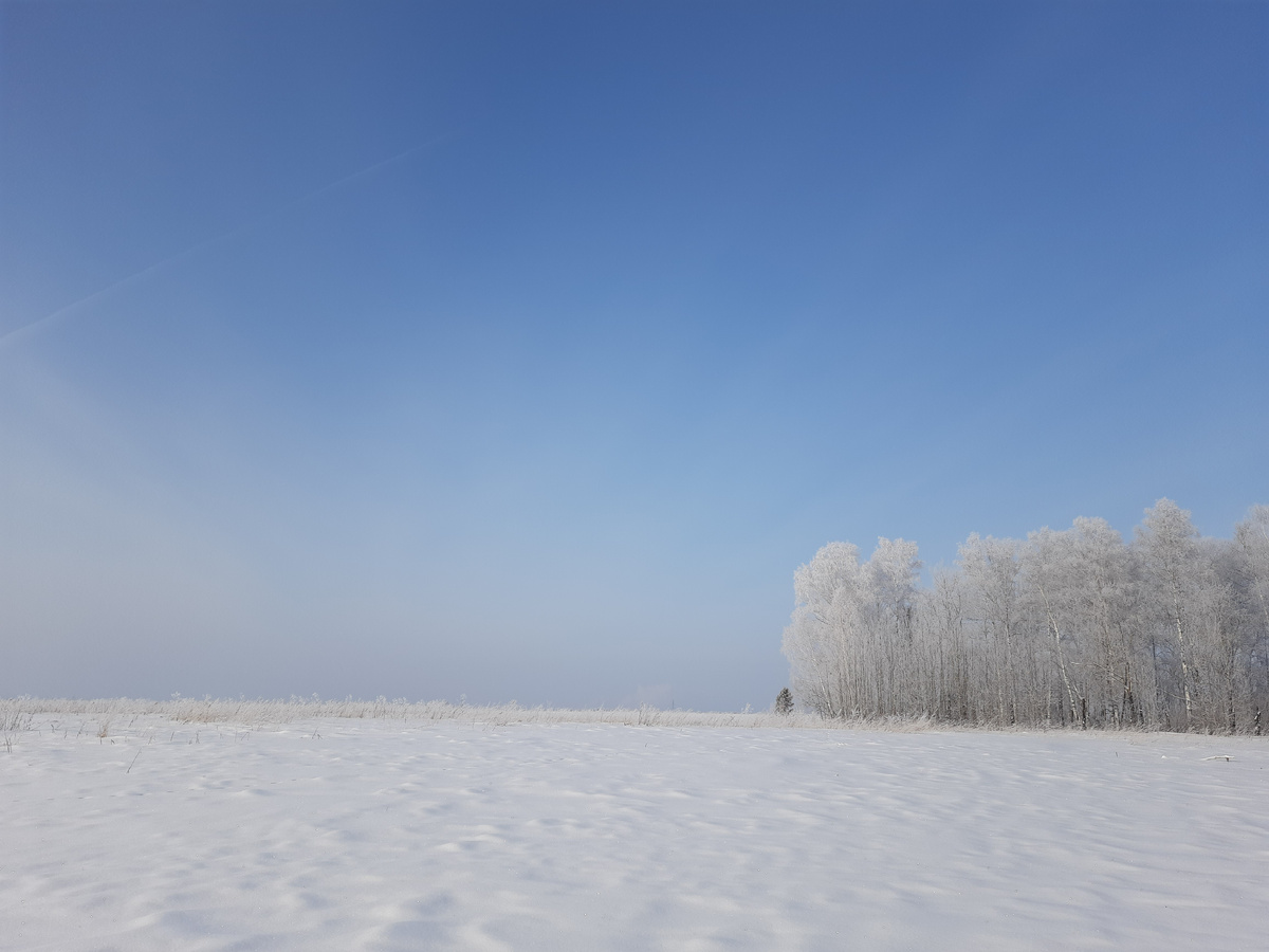 Сегодня утром термометр за окном показал -35. В городе теплеет быстрее, а вот за городом мороз держится дольше. Низкое зимнее солнце медленно поднимается. Светит ярко, но ещё не греет.