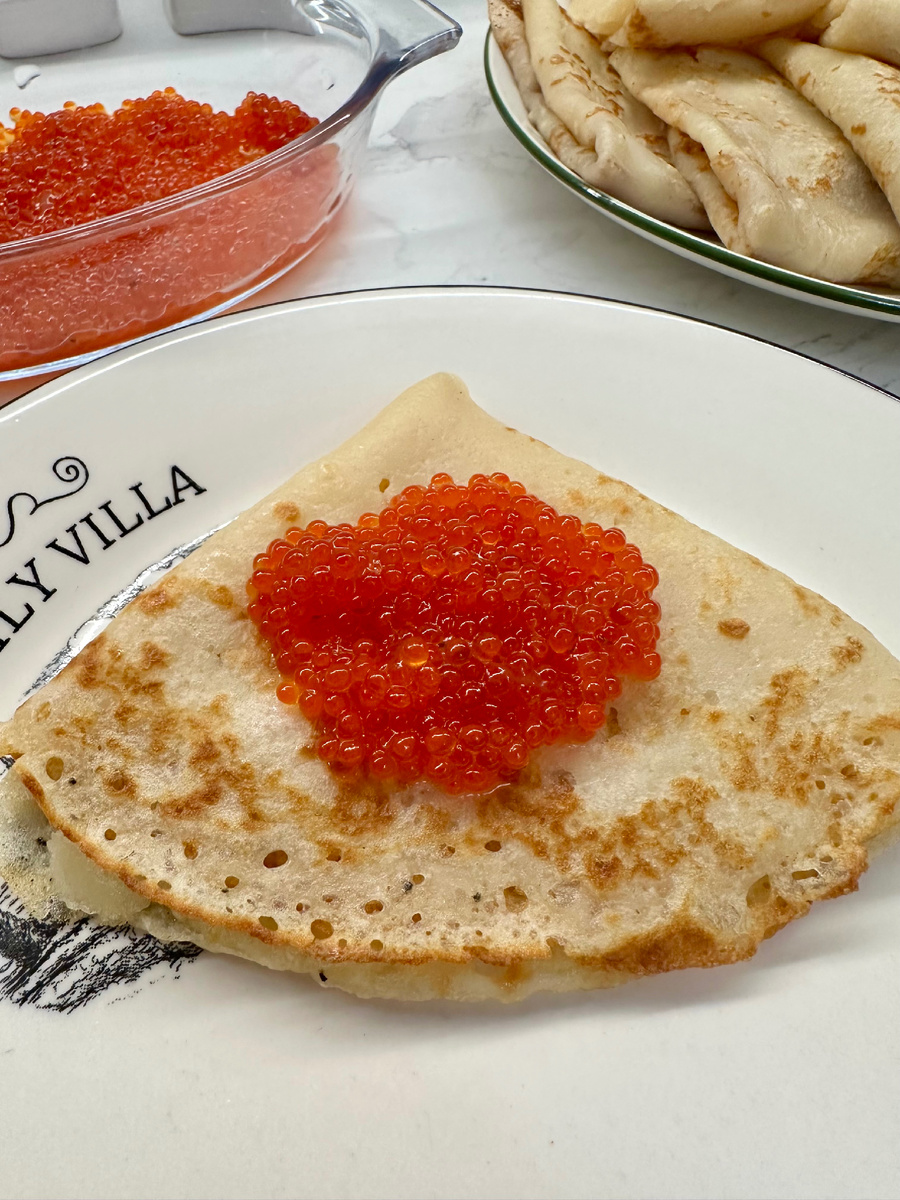 икра уже есть, вы просто даёте ей достойную «сцену» в виде блинчиков.