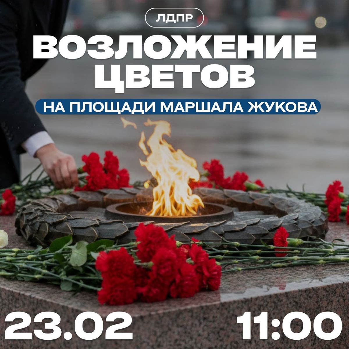 Завтра, в День Защитника Отечества, депутаты, активисты, координаторы и молодёжь ЛДПР возложат цветы в сквере имени Маршала Жукова. Приглашаем всех желающих присоединиться к памятному событию и отдать дань уважения погибшим воинам всех времён. ◻23 февраля; ◻11:00; ◻площадь Маршала Жукова.