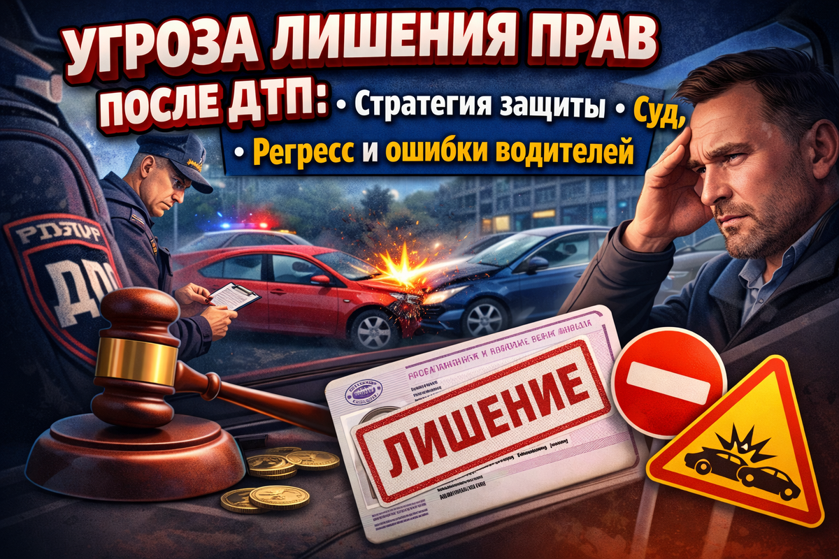 🚗 Угроза лишения прав после ДТП: стратегия защиты, суд, регресс и ошибки водителей
