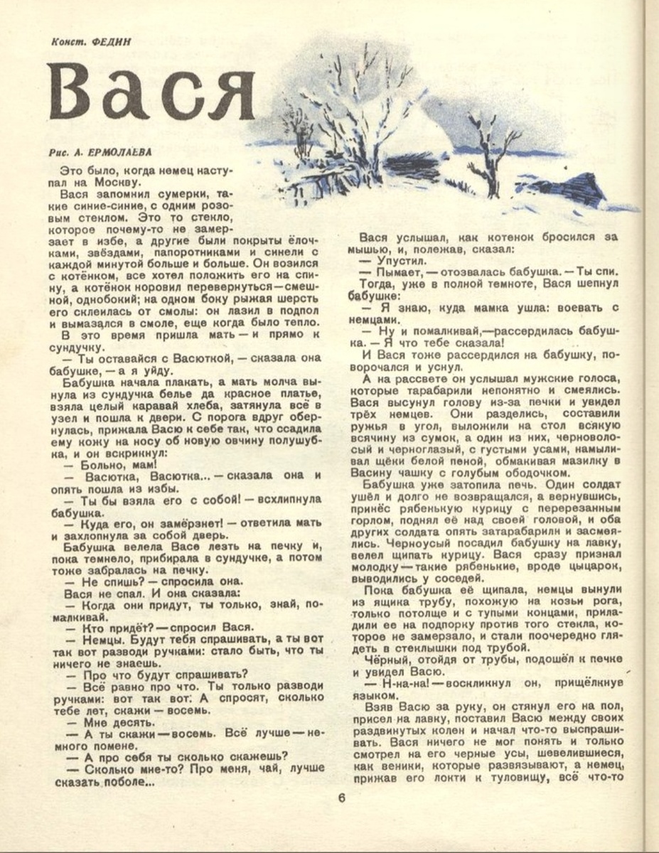 1. К. Федин "Вася" ( Мурзилка 1944 год, октябрь).