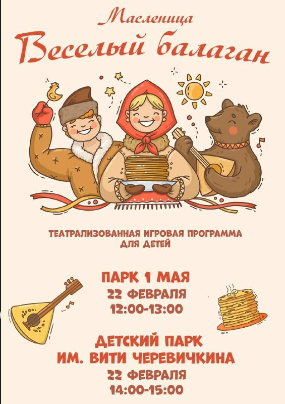 » 22 февраля 12:00–13:00 Парк 1 Мая 14:00–15:00 Детский парк им. Вити Черевичкина 🫠 Детские мероприятия Ростов-на-Дону. Я местный! 📲 Мероприятия Ростов-на-Дону. Я местный! в MAX