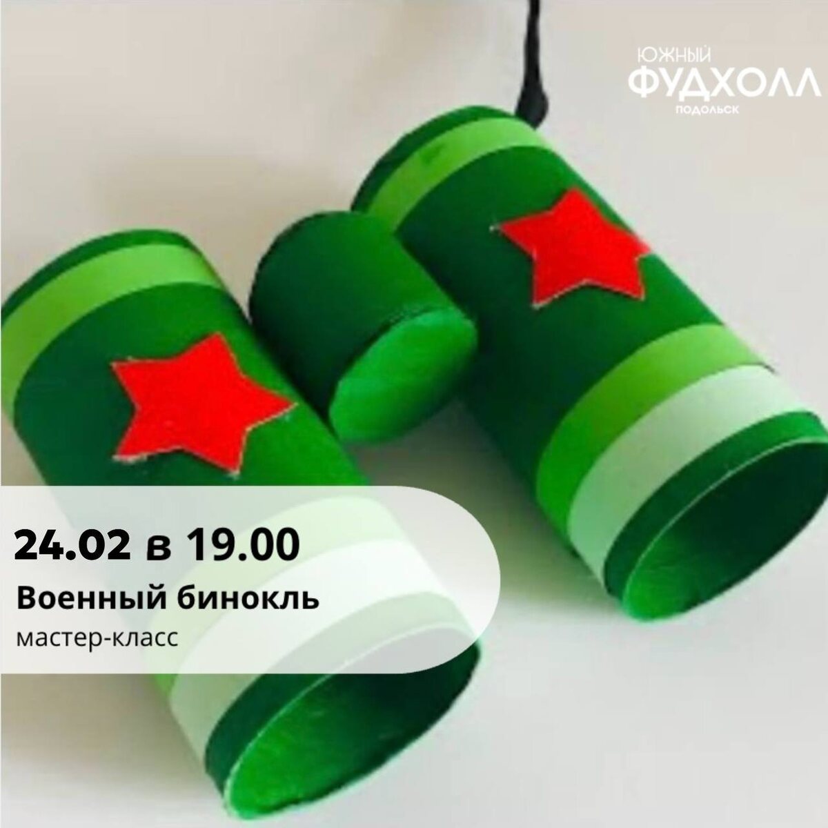 ⭐ 🪖«Военный бинокль» 🙂Приглашаем детей на творческий мастер-класс, где будем создавать тематический бинокль своими руками. Интересный процесс, развитие фантазии и отличный результат, который можно забрать домой 👀 ❗Ждём юных участников на Фудхолле Южный — будет увлекательно и познавательно! *мастер-классы проходят для гостей Фудхоллов Южный и Центральный, поэтому перед посадкой ребёнка нужно показать чек на любую сумму из любого корнера в этот день 🌷 📆 24.02.2026 🕒 19:00 🏢 Фудхолл Южный 📍 г. Подольск, ул. Академика Доллежаля, 39 ⭐Поддержать канал голосом 🍰Где поесть в Подольске ✅ Мероприятия Подольск https://dzen.ru/id/66ed500f7b5671493eca3fd6 http://vk.com/podolsk_events http://dzen.ru/podolsk_events