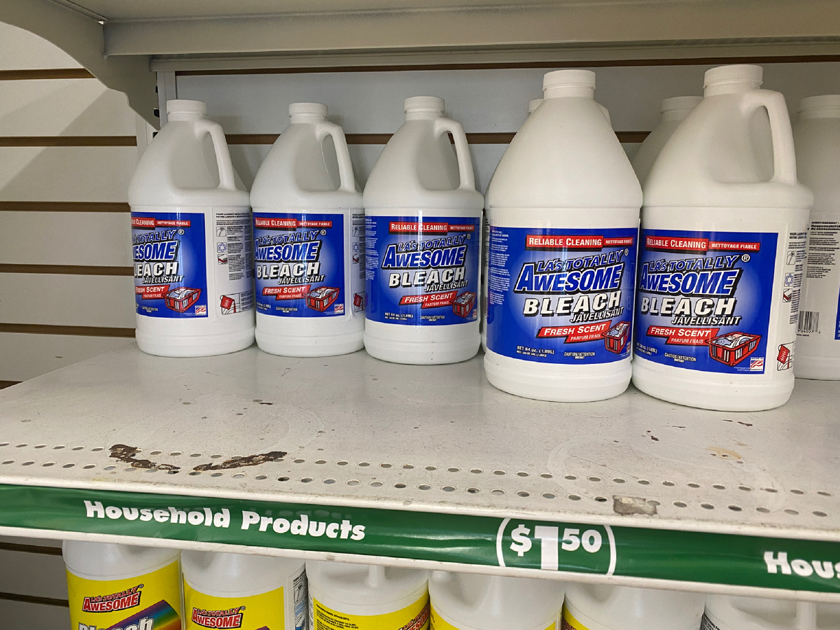 Первый пакет — хозяйственный. Хлорка. 64 oz — по-нашему 1,89 литра. С лимоном, чтобы жизнь не казалась такой суровой. 1,5 доллара. То есть около 115 рублей. И не надо привязываться к объёму, мол «а у нас три литра за эти деньги». Мы сейчас сравниваем сам факт: хлорка по цене чашки кофе в российском ТЦ. Однако у меня есть подозрения на счет качества этой хлорки, надеюсь внутри всё-таки не вода из-под крана.
