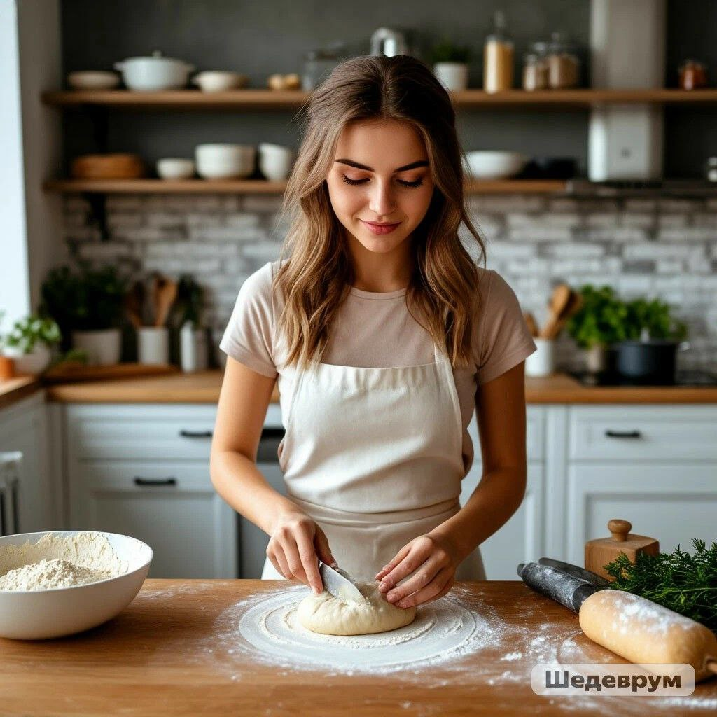 После разговора с Денисом, Кристина отправилась на кухню. Дома она находилась одна и хозяйничать ей пришлось самой. Идти на ужин с пустыми руками она не хотела и решила что-то испечь. Например пирог. В интернете было полно разных рецептов и она выбрала тот, что попроще. Кристина очень старалась, но пирог у неё получился корявенький.