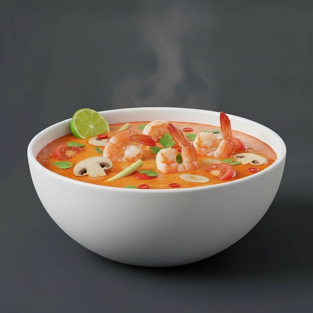 Том Ям — суп, где кислое, острое и сладкое идеально сбалансированы. Ключ — в пасте, кокосовом молоке и свежих морепродуктах. Готовится за 30 минут, порция на 4 человека. КБЖУ (на 1 порцию, ~400 мл): Калорий — 280 ккал, Белки — 22 г, Жиры — 18 г, Углеводы — 12 г. Ингредиенты (на 4 порции): Разбор ключевых ингредиентов: Приготовление (30 минут): 1. Подготовка (5 минут): Грибы нарежь ломтиками. Чили разрежь пополам, удали семена (если меньше остроты). Лемонграсс разрежь вдоль и слегка разомни ножом. Лайм разрежь, выжми сок из одного. Кинзу порви руками. 2. База бульона (5 минут): В кастрюле на среднем огне разогрей 1 ст. л. кокосового молока (1 минуту). Добавь пасту Том Ям, обжарь 30 секунд до аромата. 3. Добавь жидкость (3 минуты): Влей воду, кокосовое молоко, лемонграсс. Доведи до кипения. 4. Грибы и приправы (5 минут): Добавь грибы, рыбный соус, сахар, половину сока лайма. Вари 5 минут на слабом огне. 5. Морепродукты (5 минут): Положи креветки (или аналог). Вари, пока они не порозовею