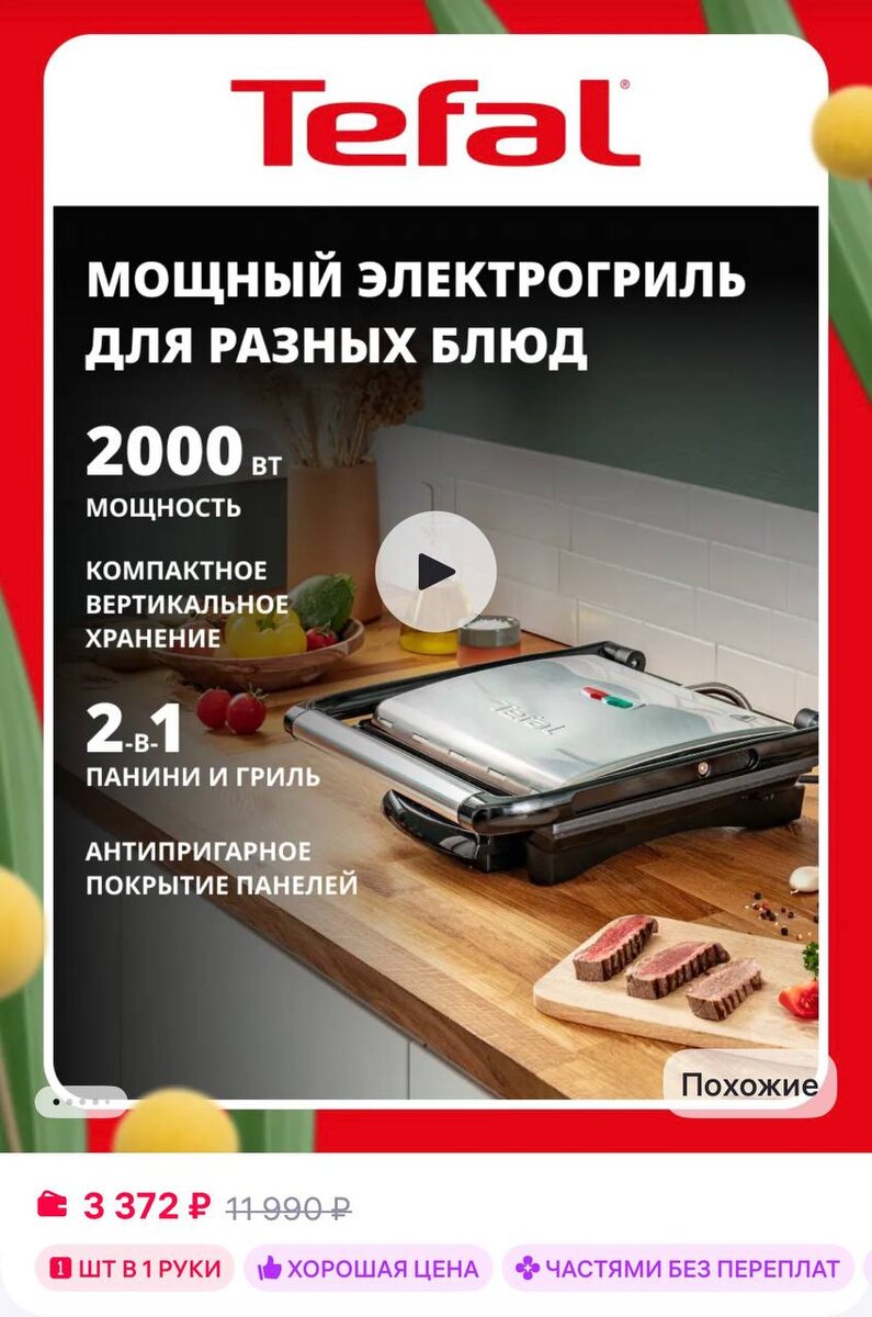 Tefal Электрический гриль Inicio GC241D38, 2000 Вт