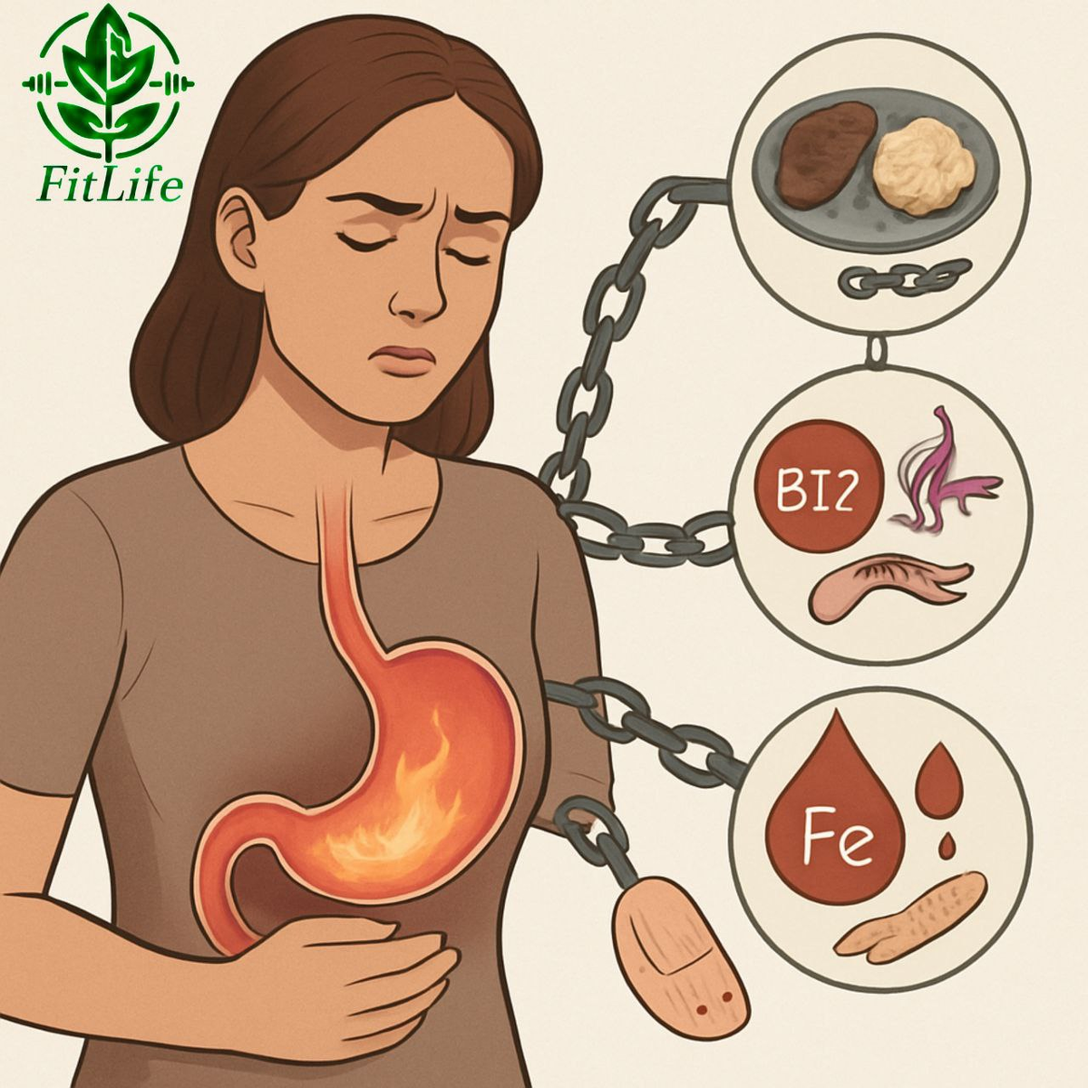 Многие привыкли думать, что изжога, тяжесть и вздутие после еды — это признаки повышенной кислотности. Но что, если всё наоборот? Недостаточная выработка соляной кислоты (гипохлоргидрия) — частая и упускаемая из виду проблема, которая запускает цепную реакцию в организме. Желудочный сок — не просто жидкость. Это барьер и ключевой участник пищеварения. Когда его не хватает, страдает усвоение нутриентов и защитные функции организма. При низкой кислотности белки не расщепляются полностью — аминокислоты до клеток не доходят. Результат: слабость мышц, проблемы с гормонами и ферментами. 🥩➡️❌ B12 содержится в продуктах животного происхождения, но без кислоты он остаётся «заперт» в белке и не всасывается — риск анемии и неврологических симптомов. Для усвоения железа, особенно из мяса, нужна кислая среда. При её недостатке анализы показывают низкий уровень железа и ферритина, даже если ты принимаешь добавки. Магний, кальций, цинк тоже хуже усваиваются при низкой кислотности. - Изжога и тяжесть