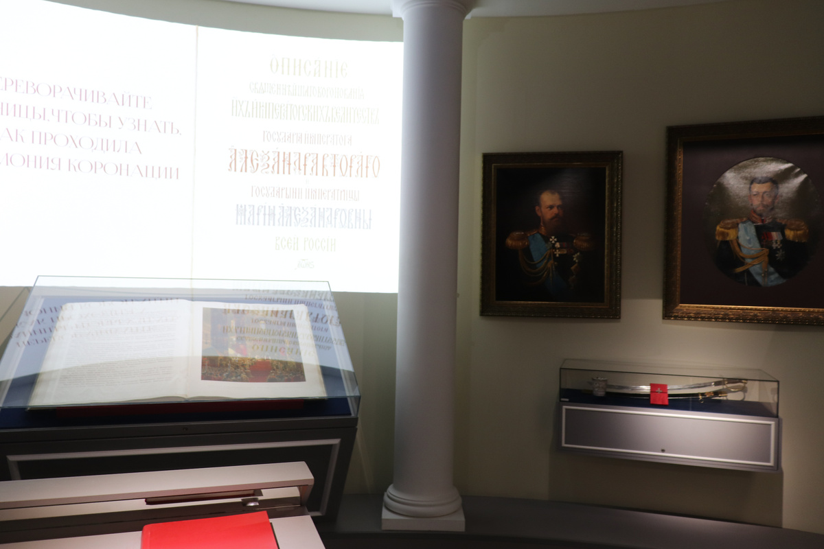 Новая выставка в нашем РИМе, та, которая про «Жизнь российской провинции во времена империи» начинается с выставленного на входе огромного альбома «Описание священнейшего коронования их императорских величеств государя Александра Второго и государыни императрицы Марии Александровны всея России». Альбом реально огромный, его размер - 92 на 70 сантиметров, не во всякий книжный шкаф такую махину поставишь. Впрочем, не для каждого книжного шкафа такие альбомы и делали. В общей сложности отпечатали всего 200 экземпляров такого альбома: 100 – на русском языке и 100 – на французском. Само собой, альбом не продавался, а предназначался для раздачи знатным придворным сановникам. В Рязанский Исторический музей этот альбом попал из библиотеки в имении графини Келлер в Сенницах Зарайского уезда. Дело в том, что Зарайск с уездом относился к Рязанской губернии. На тот момент, когда после 1917 года буржуйские библиотеки и собрания стали народными и, если повезло, то переехали в музеи, то, интересные