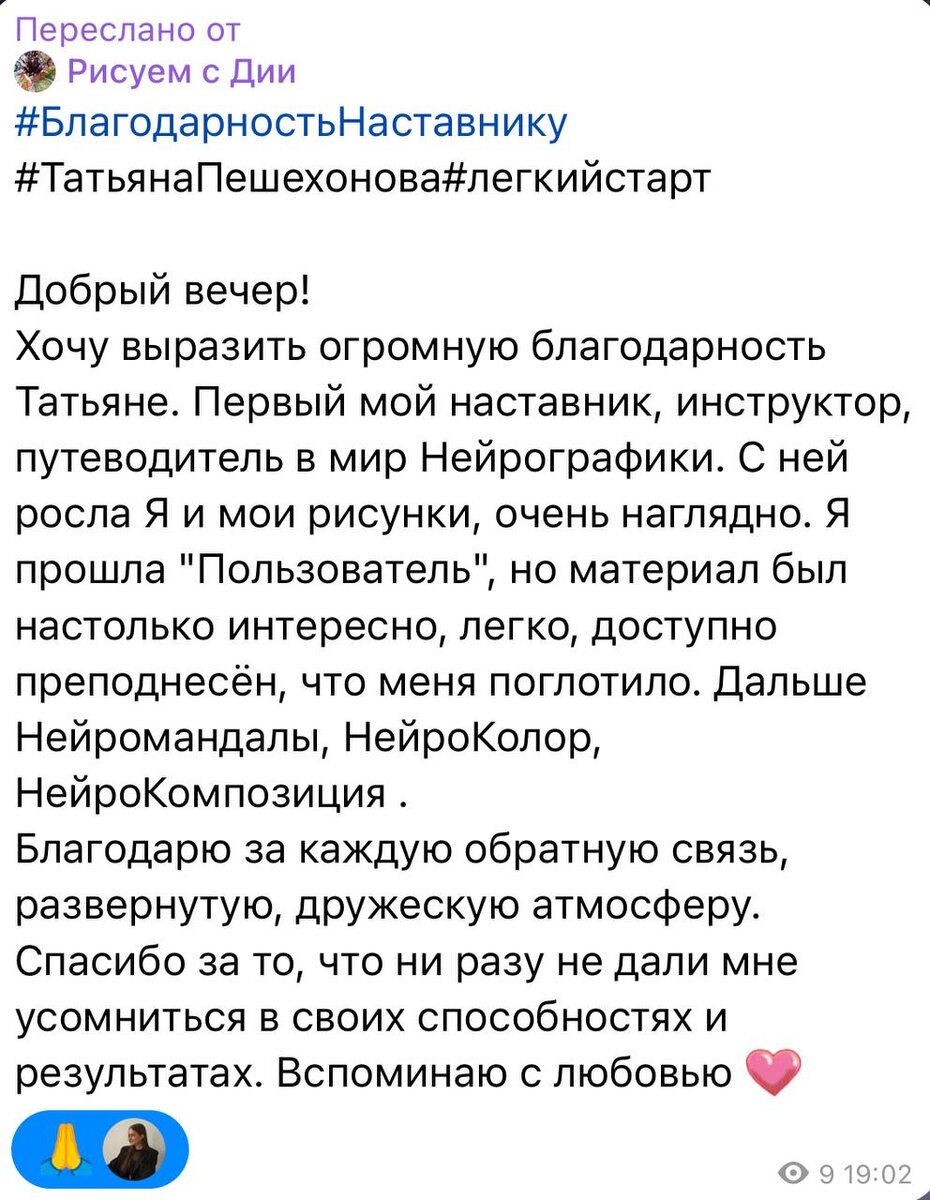 В жизни есть люди, о которых мы вспоминаем с особым теплом. Те, кто вовремя поддержал, объяснил, направил. Кто помог не просто освоить инструмент, а поверить в себя. В НейроГрафике такими людьми для многих стали наставники и инструкторы. Безумно рада видеть свое имя в числе благодарностей инструктору/наставнику🙏 Безумно рада, что обучение у меня стало этапом роста, поиска, первых уверенных шагов в профессии и личной практике🙏 Благодарю всех, кто со мной🙏