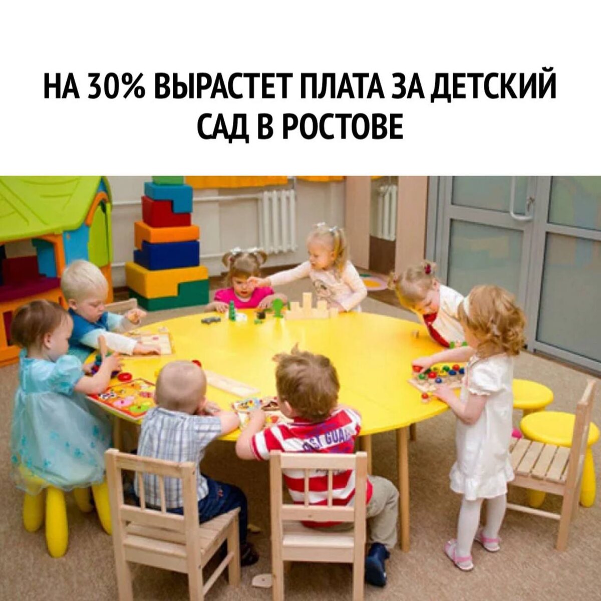 Документ уже рассмотрел глава города. Он вступил в силу в конце февраля — начале марта. ▪️ Тариф для детей до 3 лет в группах полного дня подорожает на 35,4 рубля (с 97,9 до 133,2 руб в сутки), ▪️ Для детей 3–7 лет в группах полного дня — на 40,9 рубля (со 113,5 до 154,4 рубля), ▪️ Плата за группы неполного дня (до пяти часов, без сна и питания) останется прежней - 10,8 руб. 👉🏻Новости №1 в Ростове 💌Прислать новость/фото Ростов Папа теперь в Ⓜ️🅰️❌