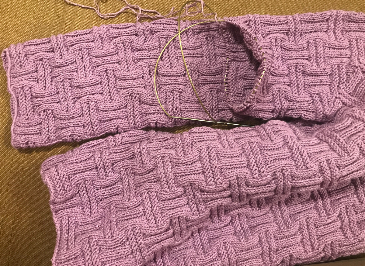 И ведь осталось-то совсем немного: обвязать горловину и связать рукава, но я с головой погрязла в мозаичном вязании.