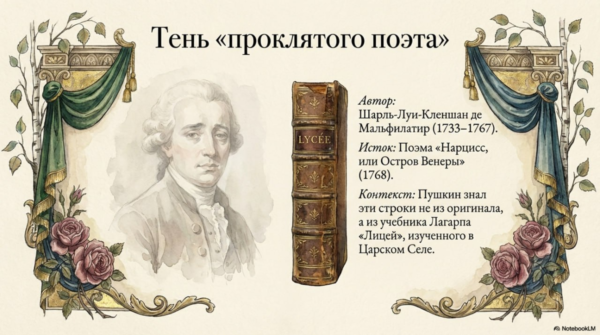 Маша, героиня романа "Не сбудется", опять говорит цитатами. На этот раз - из "Евгения Онегина". Таким образом она пытается настроиться на нужный образ - не влюбленности, но готовности впустить любовь в себя. Кто такая Элис Маша? Каждый, кто открывал третью главу «Евгения Онегина», помнит эту лаконичную французскую строчку: «Elle était fille, elle était amoureuse» («Она была девушка, она была влюблена»). Для современного читателя это звучит как милая констатация факта. Но для Александра Сергеевича Пушкина и его современников в этих пяти словах скрывался глубокий психологический код, мифологический подтекст и даже юридическая защита главной героини. Мы часто пробегаем глазами эпиграфы, считая их лишь «красивой виньеткой». Но в случае с «Онегиным» эпиграф — это секретный ключ, без которого дверь в душу Татьяны Лариной останется закрытой. Автором этой строки был Шарль-Луи-Кленшан де Мальфилатр (1733–1767). Его судьба — готовый сценарий для драмы: он умер в нищете в возрасте 34 лет, так и н