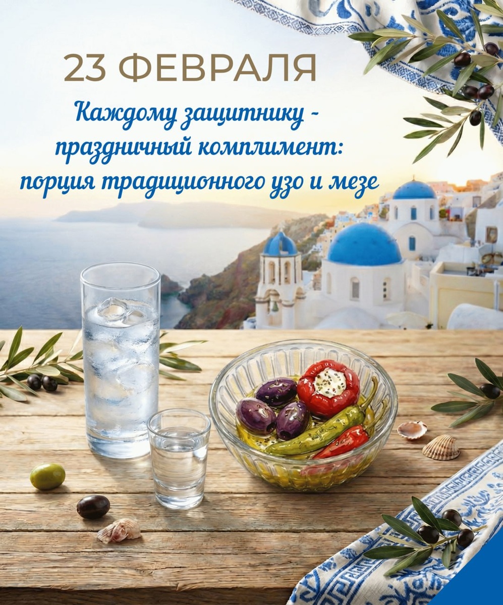 Каждому защитнику - греческий узо и мезе. Забронировать столик можно на сайте portomykonos.ru или по телефону ☎️ +74996382690 Греческий ресторан Таверна Порто Миконос. 🇬🇷🇬🇷🇬🇷 🏠 Москва, Сущевская, 27/2 , м.Менделеевская / м.Новослободская