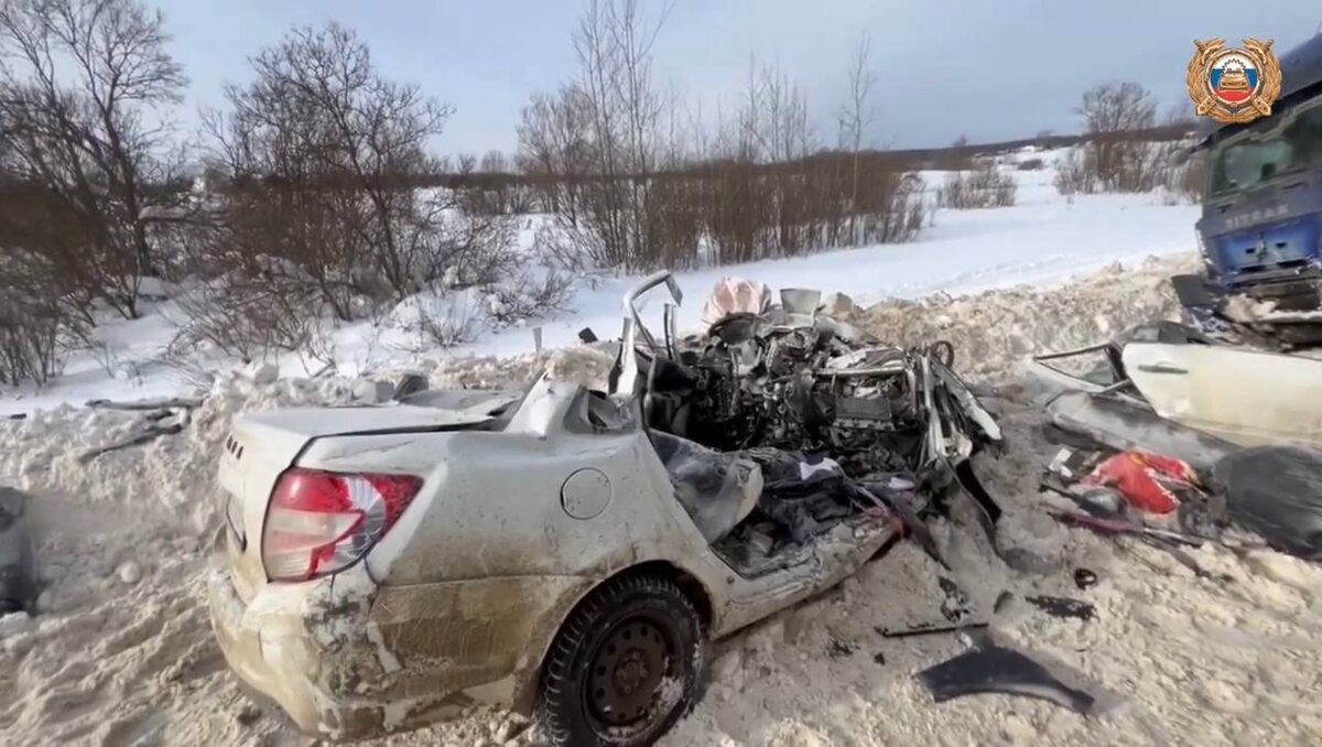 Как сообщили в Госавтоинспекции Ярославской области, авария случилась сегодня утром в Даниловском районе. По предварительной информации, 47-летняя женщина за рулём «Лады Гранты» выехала на встречку, где столкнулась с грузовиком «SITRAK» под управлением 56-летнего мужчины. От полученных травм скончались на месте водитель отечественного авто и два пассажира: 22-летняя девушка и 14-летний мальчик. Семья возвращалась из соседнего города домой. Фото: Госавтоинспекция Ярославской области. Telegram | ВКонтакте | Rutube | Одноклассники | Дзен | 35MEDIA в MAX