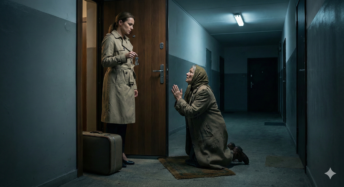 Она медленно, тяжело опустилась на колени прямо на бетонный пол подъезда. Старые узловатые пальцы вцепились в порог моей квартиры. Вчера она плевала здесь, а сегодня целовала бы эти доски, если бы я позволила.