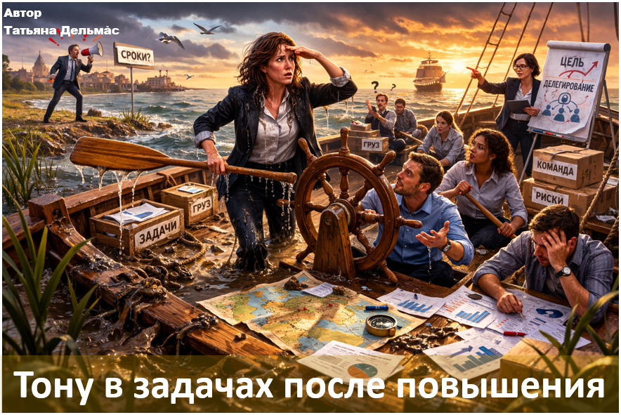Вы вроде получили повышение, а внутри растёт тревога: задач стало больше, люди ждут решений, руководство спрашивает сроки, и вам кажется, что вы не справляетесь с ролью руководителя. В этой статье через метафору покажу, почему после повышения вы можете «тонуть» даже при сильной экспертизе, и что делать, чтобы перейти от привычки «грести самостоятельно» к управлению через команду. «Если вы хотите сделать несколько небольших дел правильно – сделайте их сами. Если хотите делать большие дела и иметь серьёзный эффект – учитесь делегировать».Джон С. Максвелл Представьте: вы отлично умеете грести. Вас хвалят, вам доверяют, ценят ваш профессионализм и всегда замечают ваши успехи! И вот, как лучшему сотруднику, вам дают новую роль: не грести самой, а вести судно с гребцами, потому что вы лучше всех знаете эту реку. А вы по привычке продолжаете держать в руке весло, потому что много раз проходили этот маршрут и всегда гребли сами. Ваш мозг упорно предлагает старое решение: «Сейчас я самостоятель