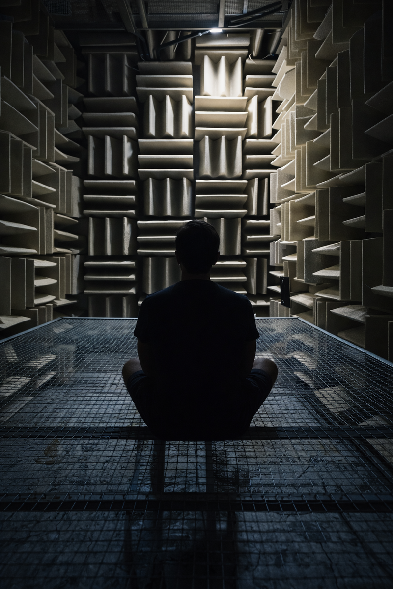 Шкала децибел логарифмическая, а ноль на ней — не отсутствие звука, а порог слышимости здорового уха. Всё, что ниже, формально существует, но человеческое восприятие работает иначе. В безэховой камере уровень фонового шума настолько низкий, что человек начинает слышать звуки собственного тела. Это не образное выражение, а буквальная реальность. Люди различают работу суставов, движение крови и собственное дыхание изнутри. Организм, лишённый внешнего фона, неожиданно становится главным источником шума.