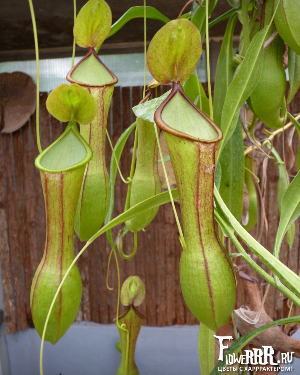 🥰 Неприхотливый вид с пёстрыми кувшинами необычной формы, которые достигают от 10 до 18 см в длину. Ловушки имеют широкое, лопатовидное основание, которое плавно сужается к горлышку кувшина. Нижние ловушки, как правило, ярко выраженной лопатовидной формы, верхние — более вытянутые, но сохраняют характерное расширение в основании. Окрас кувшинов преимущественно зелёный или оливковый, часто с красными или бордовыми пятнами и прожилками на внешней стороне. Внутренняя поверхность кувшина более насыщенного оттенка — красноватая или тёмно‑зелёная. N. Spathulata произрастает в горных районах на о. Ява в Индонезии на высотах 1000–2000 м. Вид был впервые описан в 1935 г. голландским ботаником Б. Х. Д. Й. Костермансом, который изучал флору Юго‑Восточной Азии. Название происходит от латинского spathula («лопаточка», «ложечка») и отражает характерную форму листьев и основания кувшина. В нашем питомнике вы можете приобрести гибриды этого вида: • Spathulata * tenuis • Spathulata * ampullaria