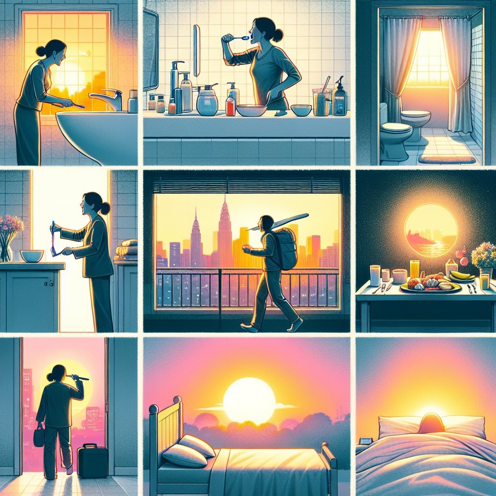 🌅 "To wake up" - просыпаться Проснуться утром и начать новый день. "Brush your teeth" - чистить зубы Уход за гигиеной рта утром и вечером. "Have breakfast" - завтракать Принимать пищу в начале дня. "Go to work" - идти на работу Направляться к месту работы. "Come home" - приходить домой Возвращаться домой после работы. "Go to bed" - ложиться спать Завершать день и отдыхать ночью. Пример: "I wake up at 7 AM every day." - "Я просыпаюсь в 7 утра каждый день."