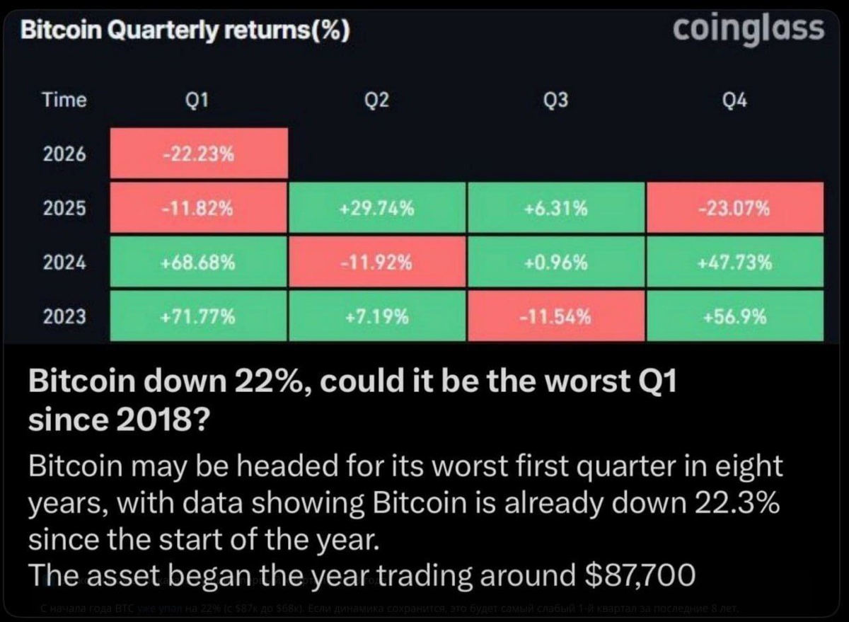 ? BTC с начала года минусует больше 20%. Цена топчется в районе 67–70к. Январь и февраль оба в минус — это будет худший старт года за много лет, для битка такое вообще редкость. Исторически после слабого Q1 биток часто отскакивал. Но рынок уже не тот, чтобы слепо верить, что будет «как раньше». Самое неприятное то, что нет новой аудитории. По поисковым запросам, соцметрикам, активности — год тишины. Мы крутимся в своём же капитале, без притока свежих денег. Вопрос простой: нас выжимают, чтобы потом запустить новый разгон, когда все сдадутся? Или цикл реально выдыхается? Пахнет усталостью. А усталость на рынке часто бывает ближе к дну, чем к вершине. А Вы как думаете?