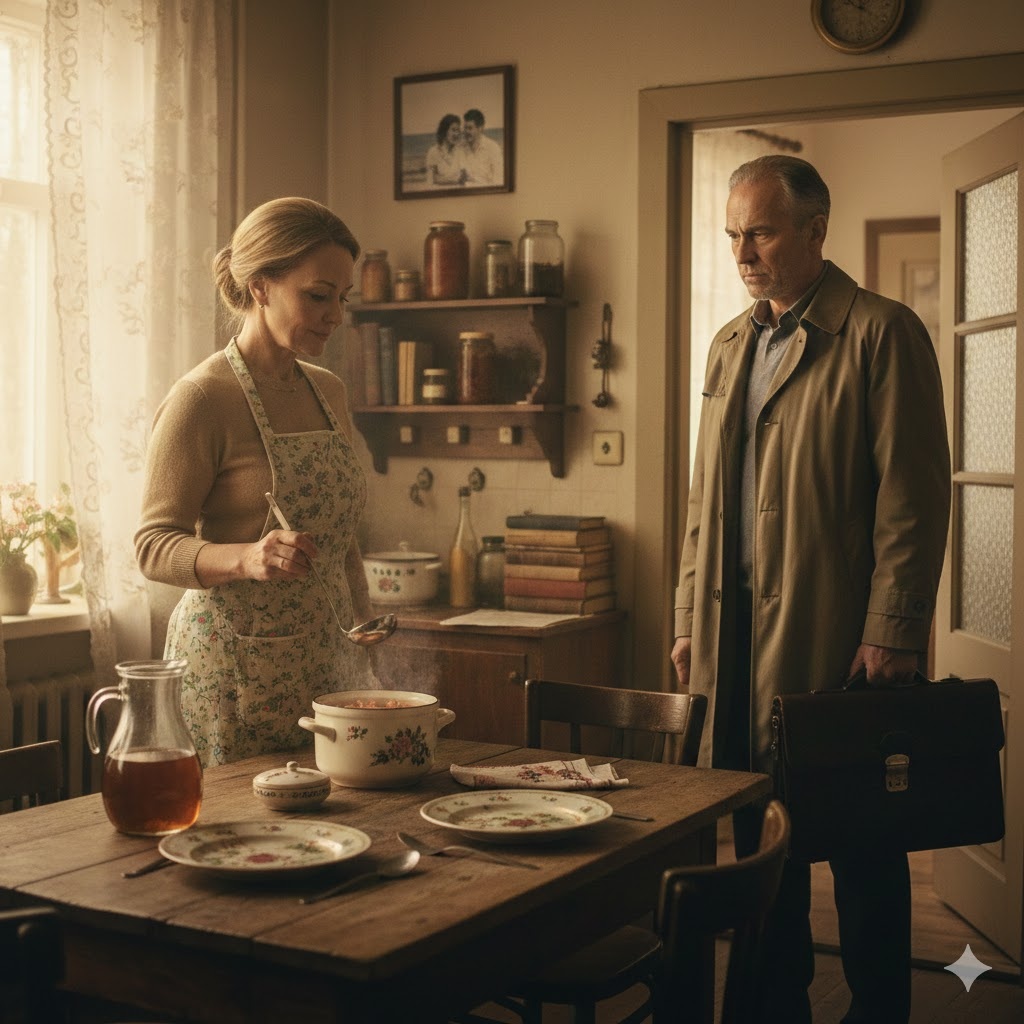 Кухня в квартире Савельевых всегда пахла уютом: немного ванилью, немного свежемолотым кофе и совсем чуть-чуть — старыми книгами. Елена Петровна, женщина с мягким взглядом и удивительно прямой осанкой, расставляла тарелки к ужину. Она знала каждый шаг своего мужа, Бориса, по звуку в прихожей. Вот он снял туфли, вот зашуршал плащом, вот замер у зеркала.