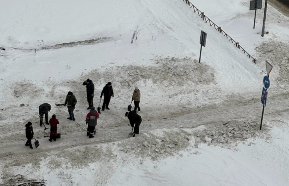 В Рыбинске жители дома самостоятельно освобождают дорогу от снежного плена